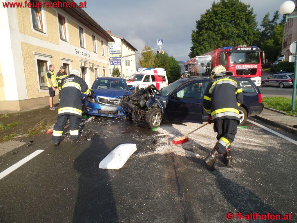 Aus noch unbekannter Ursache kollidierten auf der Untermarkterstrasse, im Ortsgebiet von Althofen, zwei Fahrzeuge frontal. Dabei wurde 1 Person schwer und 2 Personen unbestimmten Grades verletzt.