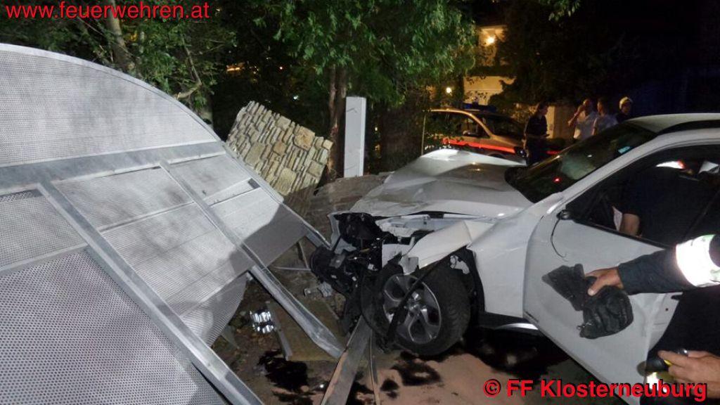 Ein Mann verlor mit einem Fahrzeug einer Carsharing-Firma, vermutlich durch erhöhte Geschwindigkeit, die Kontrolle über den Pkw und krachte anschließend in eine Hauseinfahrt. Mittels Wechselladefahrzeug-Kran konnte das beschädigte Auto geborgen und abtransportiert werden. Anschließend wurden die Verkehrsflächen gesäubert. Während des Einsatzes wurde die Straße vorübergehend gesperrt.