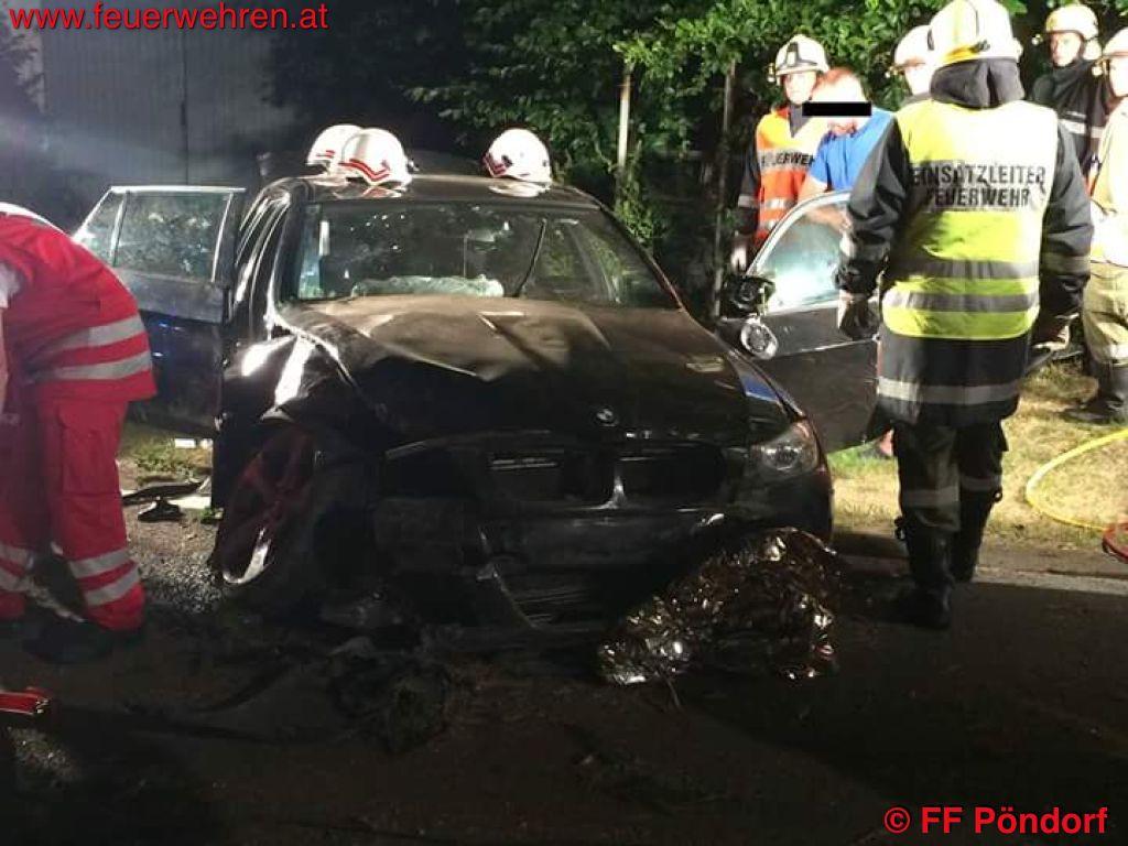Am Samstag, den 15.08 wurde die Feuerwehr Pöndorf gemeinsam mit den Feuerwehren Frankenmarkt und Volkerding zu einem Verkehrsunfall mit eingeklemmter Person nach Obermühlham um 22:11 Uhr alarmiert.