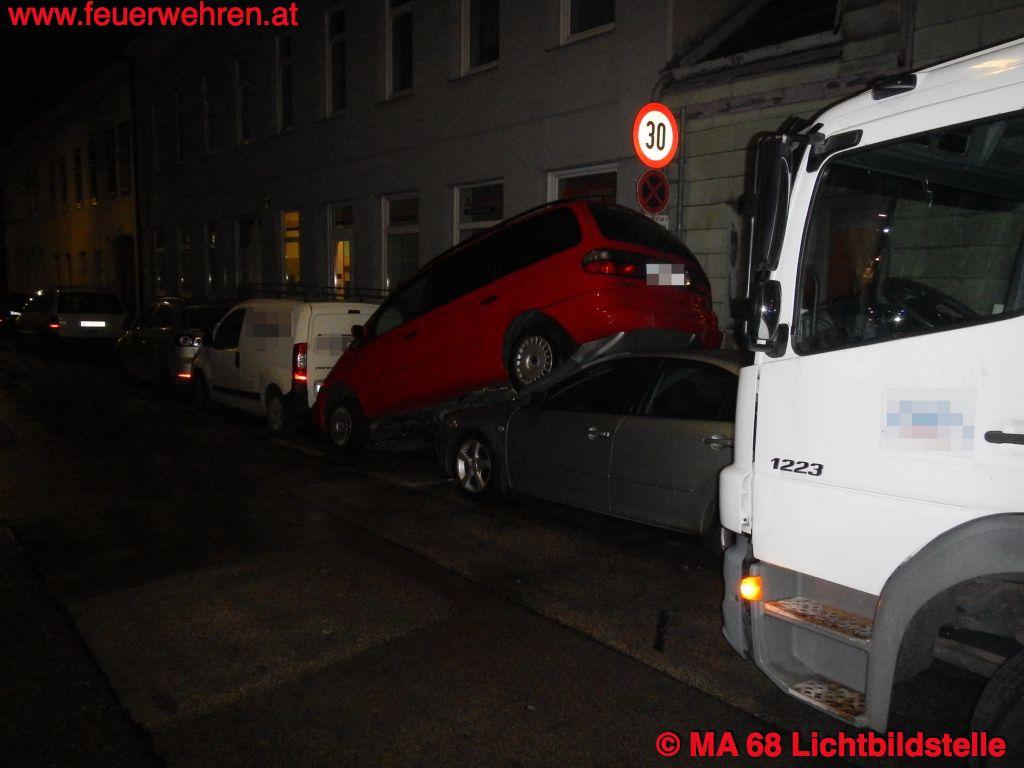 Aus bisher unbekannter Ursache touchierte ein Lieferwagen in der Fröhlichgasse beim Vorbeifahren einen geparkten PKW, und schob ein weiteres Auto nach vorne. Dadurch wurde dieses unter das davor abgestellte Kraftfahrzeug gedrückt.