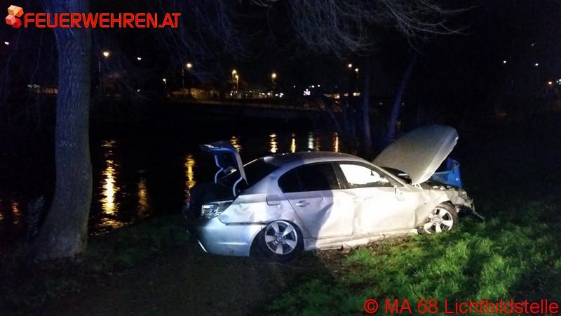 Heute in der Nacht verlor aus bisher unbekannter Ursache ein PKW Lenker die Kontrolle über sein Fahrzeug und war von der Erdberger Lände, Fahrtrichtung stadtauswärts im Bereich der Stadionbrücke von der Fahrbahn abgekommen und in weiterer Folge über die Böschung auf den Treppelweg am Ufer des Donaukanals gestürzt.