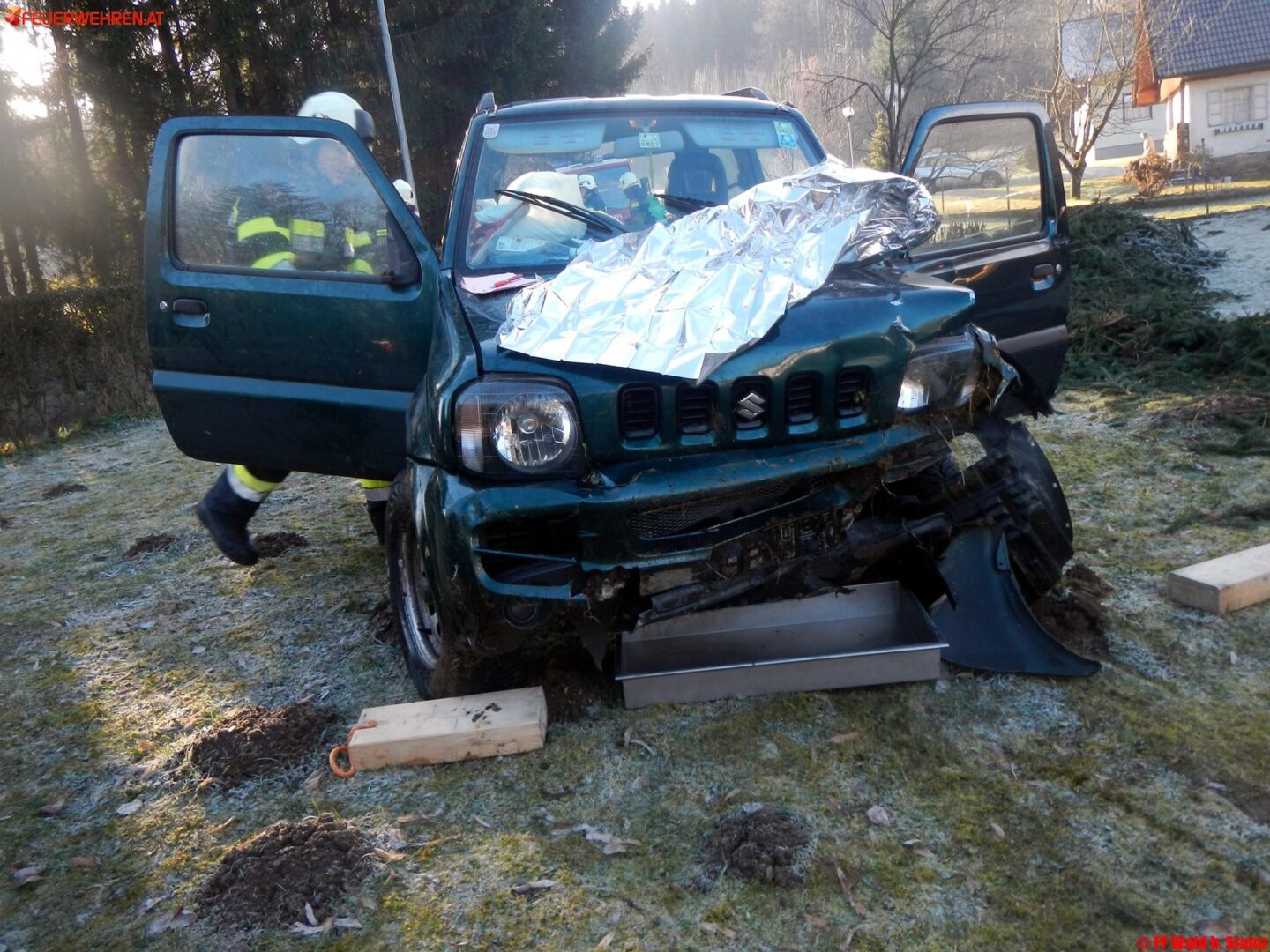 Zwei Personen wurden verletzt, wobei eine Person von der Feuerwehr befreit werden musste. Durch den enstandenen Fahrzeugschaden trat auch ÖL aus, welches beim Einlauf in den Stainzbach von der Feuerwehr gebunden wurde. Eine Verschmutzung des Stainzbaches konnte verhindert werden.