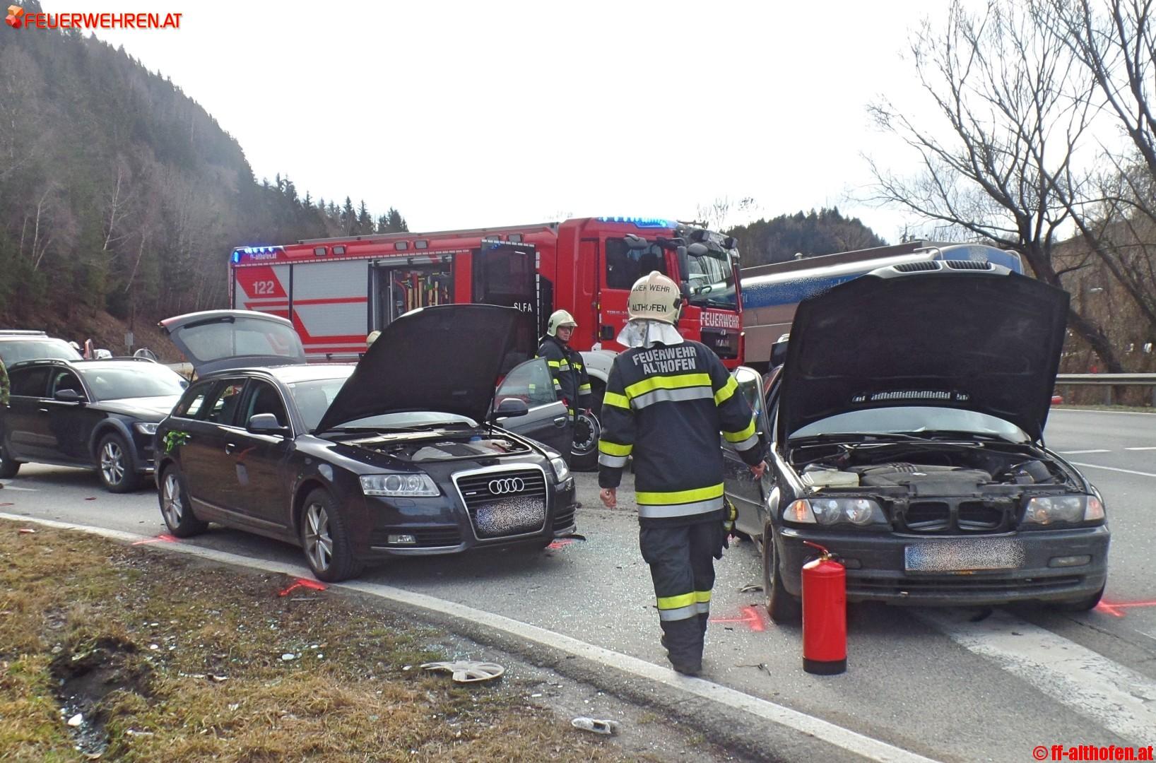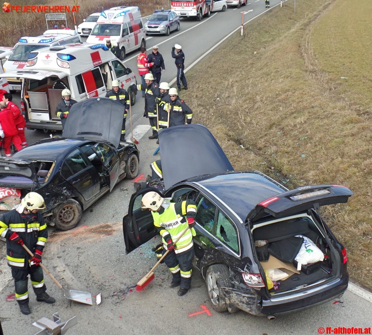 Im Kreuzungsbereich der B317 und der Friesacher Straße (Abfahrt Althofen) kam es am Dienstag, dem 1. März 2016 gegen 9.30 Uhr, bei einem Abbiegemanöver, zu einer Kollision zwischen zwei Fahrzeugen und einem LKW.