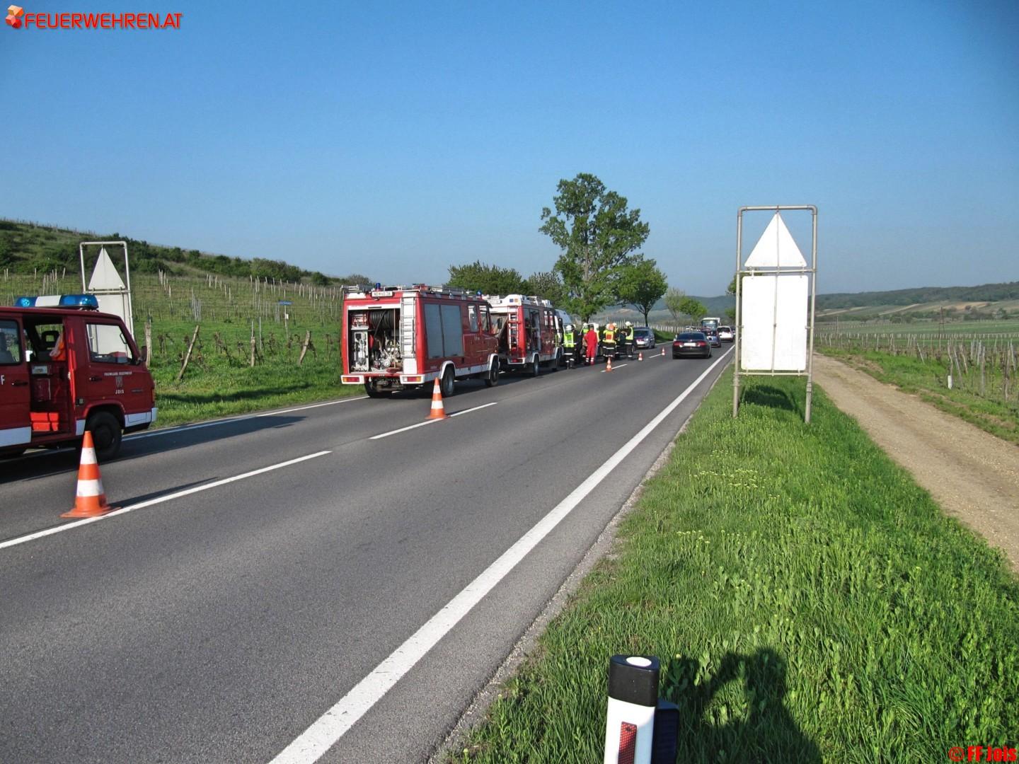 Die Feuerwehr Jois war mit 14 Mann/Frau und drei Fahrzeugen im Einsatz. Weiters waren das Rote Kreuz, mit einem Fahrzeug, und die Polizei, mit zwei Fahrzeugen, am Einsatzort.