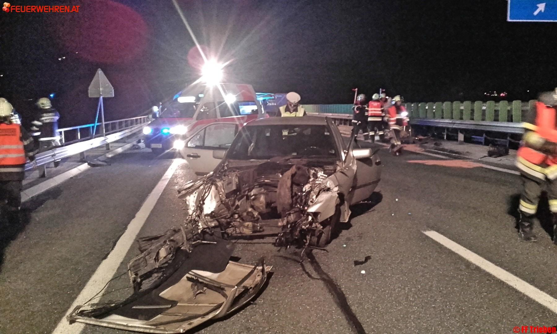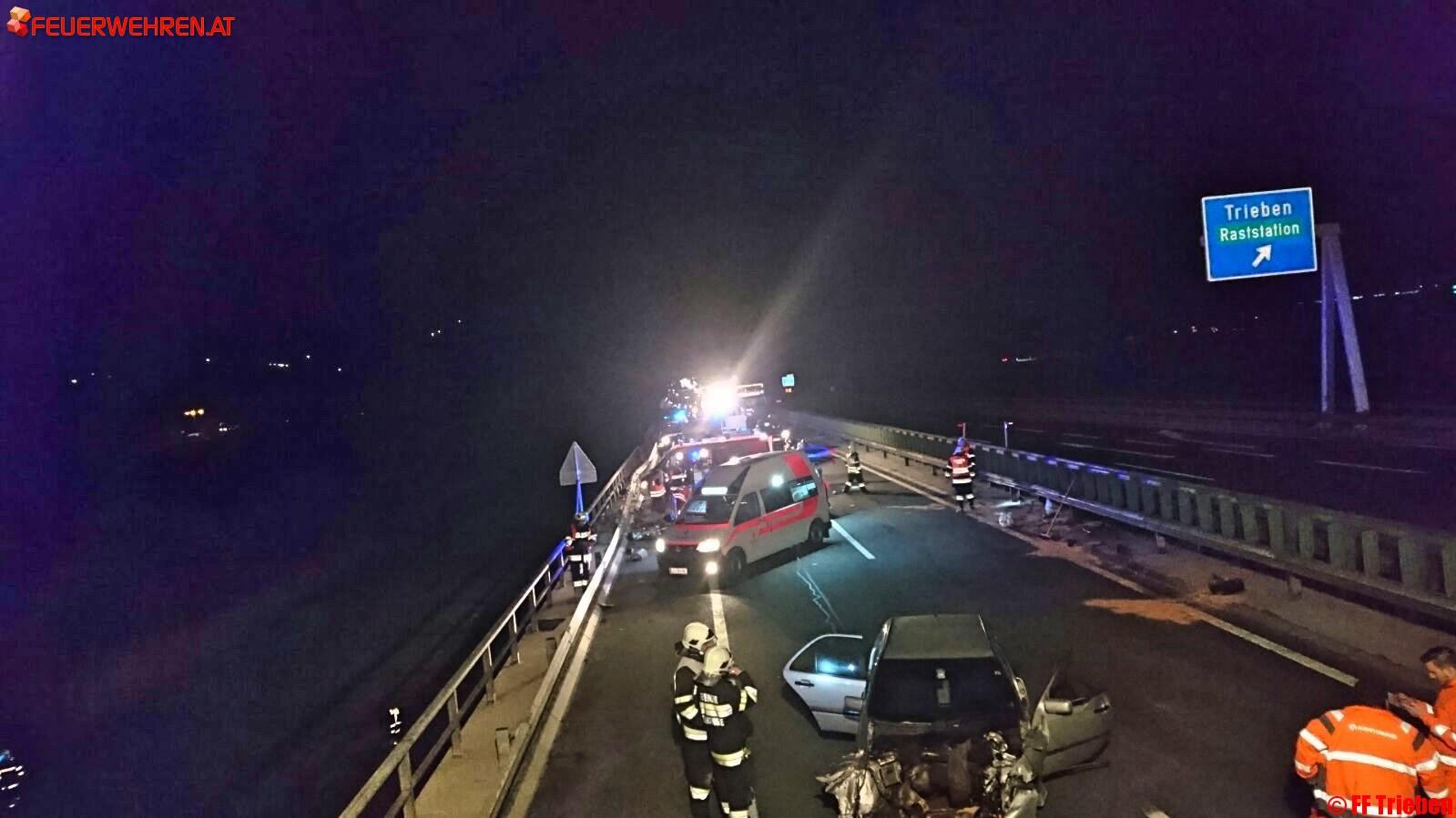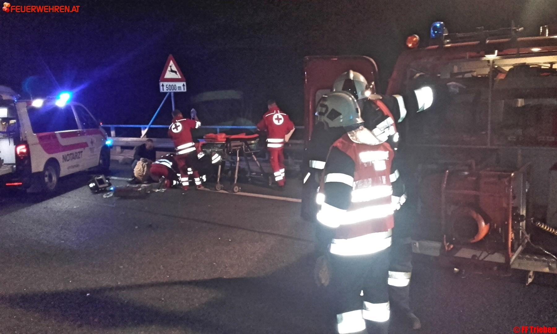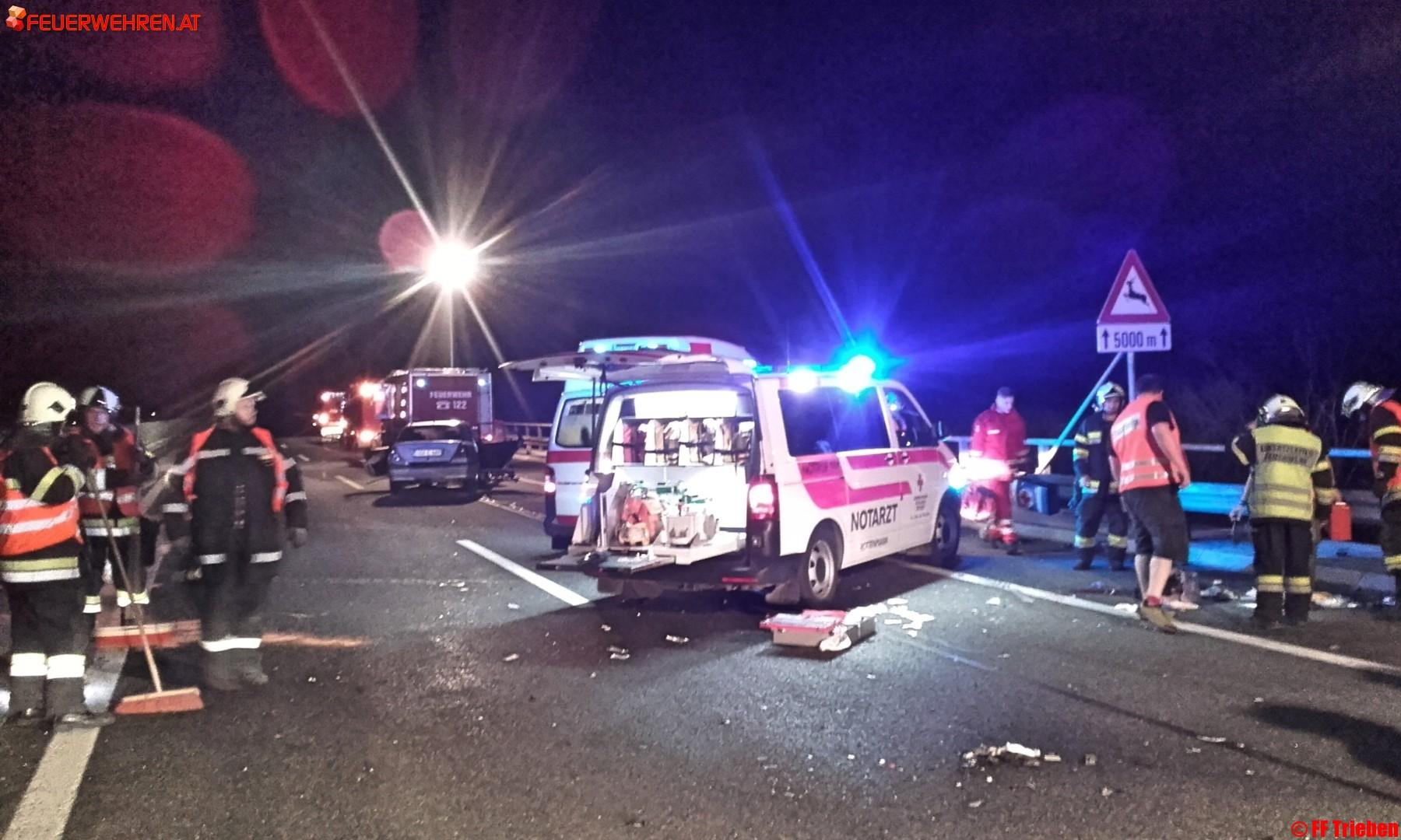 Gestern den 14.04.2016, um 20:33h wurde die Feuerwehr Trieben zu einem schweren Verkehrsunfall auf die A9 Fahrtrichtung Linz alarmiert.