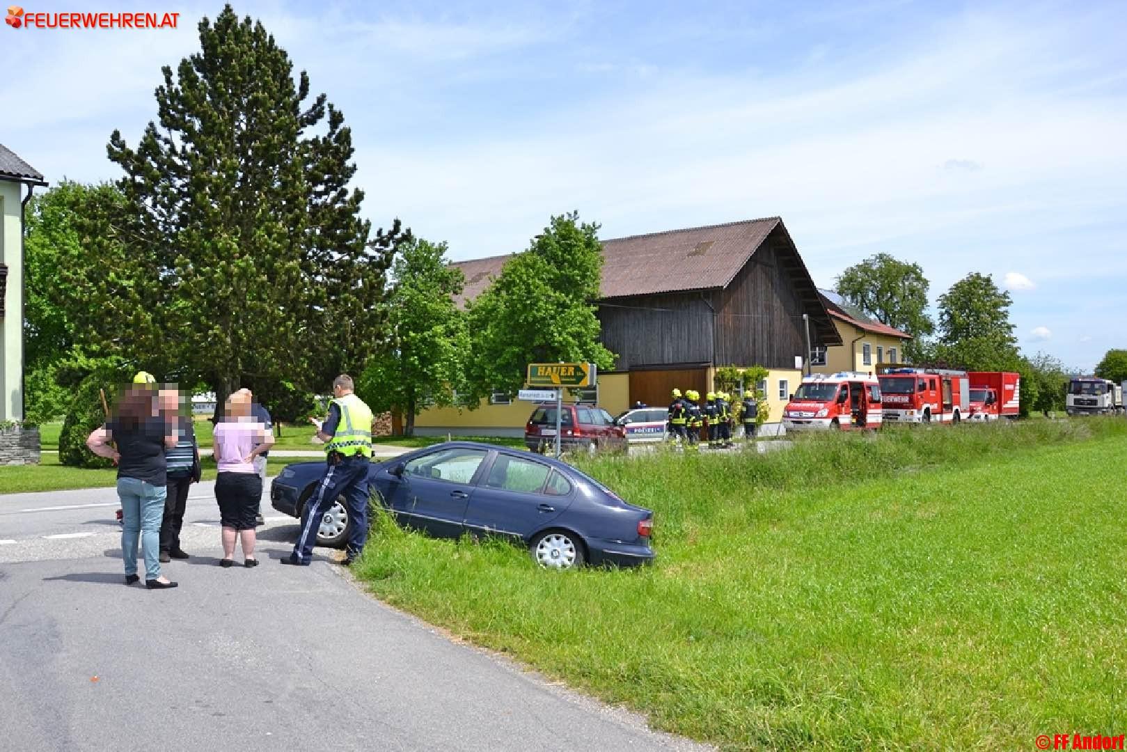Beide Fahrzeuge waren auf der Harterstraße in entgegengesetzter Richtung unterwegs. Auf Höhe des Güterweges Teuflau wollte eine junge Andorferin nach links abbiegen und dürfte dabei den entgegen kommenden Seat übersehen haben, wodurch es zu einer folgenschweren Kollision kam.