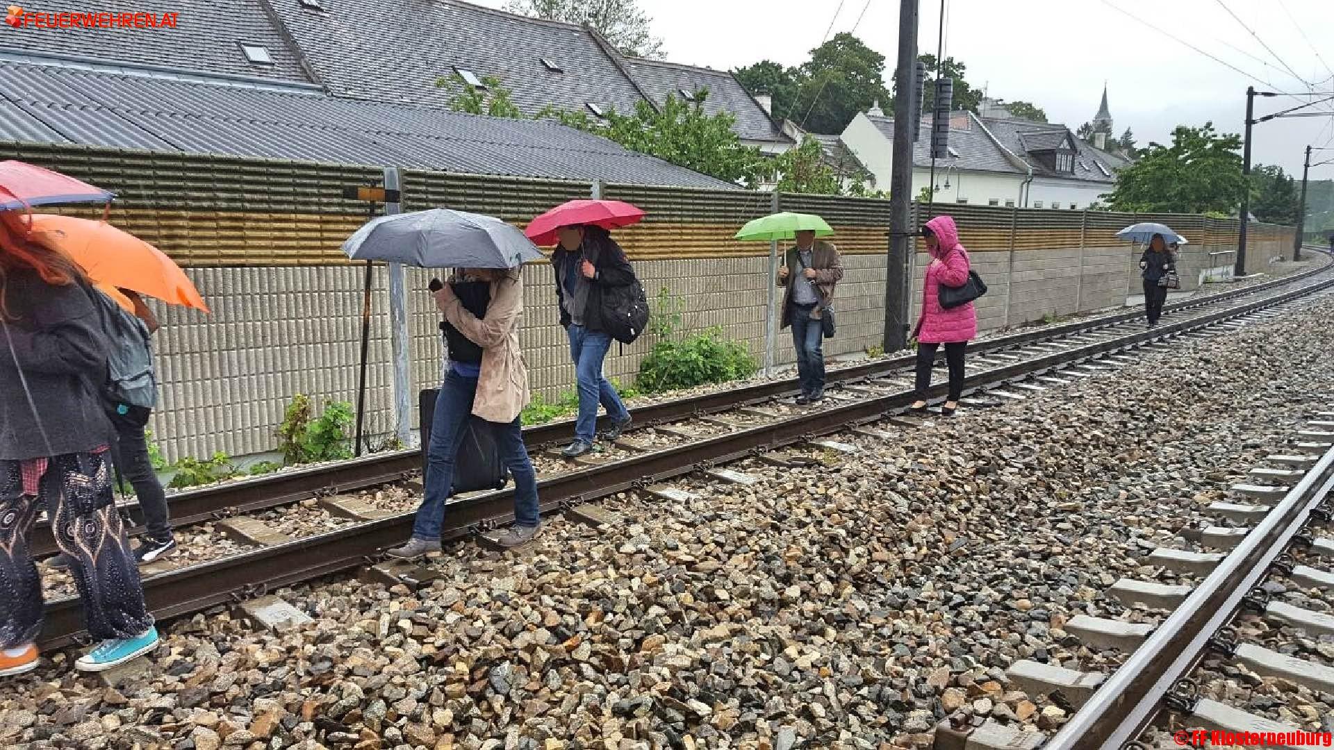 Ein Baum stürzte auf die Oberleitung, sodass der Passagierzug trotz Bremsversuch des Lokführers dagegen krachte und schadhaft liegen blieb. Die Aufgabe der Feuerwehr Klosterneuburg bestand darin, die rund 150 Fahrgäste des Zuges zu evakuieren und bis zum Bahnhof Klosterneuburg-Kierling zu begleiten.
