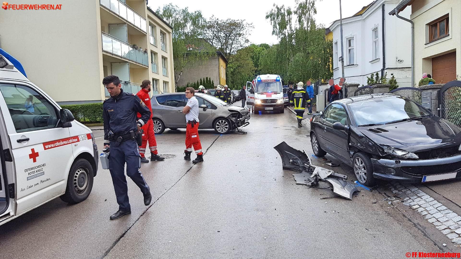 An der Ecke Nikolaihofgasse – Ottogasse ereignete sich ein Verkehrsunfall zwischen zwei Pkws, wobei ein Fahrzeug nach dem Zusammenstoß gegen den Zaun eines Hauses krachte.