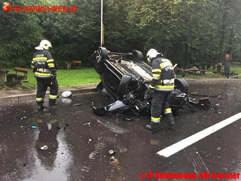Die Kameraden der Stadtfeuerwehr rückten umgehend mit RLFA und TLFA zum Einsatzort aus. Der Unfalllenker konnte sich selbst aus dem schwer beschädigten Fahrzeug befreien. Einsatzleiter OBI August Gaßner ordnete sofort die Absicherung der Unfallstelle und Aufbau des vorbeugenden Brandschutzes an. Als der PKW gesichert war, konnte der verunreinigte Bereich rasch gesäubert werden.