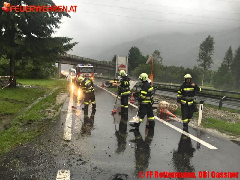 Der Fahrer wurde vom Roten Kreuz durchgecheckt. Die Absicherung des Gefahrenbereichs wurde vom Streckendienst der ASFINAG übernommen. Nach ca. einer dreiviertel Stunde konnte die FF Rottenmann wieder einrücken. Der PKW wurde vom Abschleppdienst Maurer geborgen.