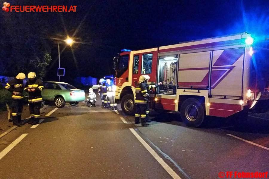 Gegen 01:30 Uhr kam es aus bisher nicht geklärter Ursache zum einem Unfall unweit dSteiermarkes Rüsthauses der ortsansässigen Feuerwehr. Als die ersten Feuerwehrkameraden an der Einsatzstelle eintrafen, fanden sie das Unfallwrack am Bürgersteig stehend vor. Allerdings war der Lenker nicht auffindbar.