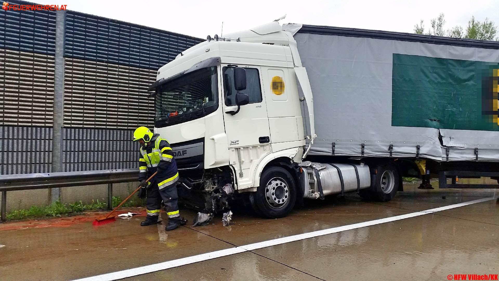 Kurz vor 12 Uhr Mittag wurde die Hauptfeuerwache Villach gemeinsam mit den Freiwilligen Feuerwehren Wernberg und Drobollach zu einem schweren Verkehrsunfall mit vermutlich eingeklemmter Person auf die A2 Südautobahn in Fahrtrichtung Klagenfurt alarmiert.