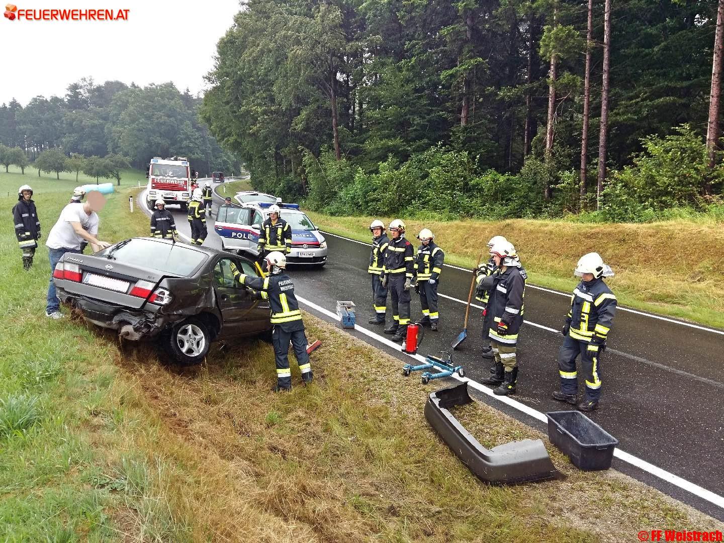Am 17.07.2016 um 13:41 Uhr wurde die FF Weistrach zu einem Verkehrsunfall auf die B122 Kilometer 18,10 gerufen. Da es sich um einen Sonntag handelte, wo viele Zuhause sind, rückten innerhalb kürzester Zeit 19 Feuerwehrmänner/frauen zum Einsatz aus.