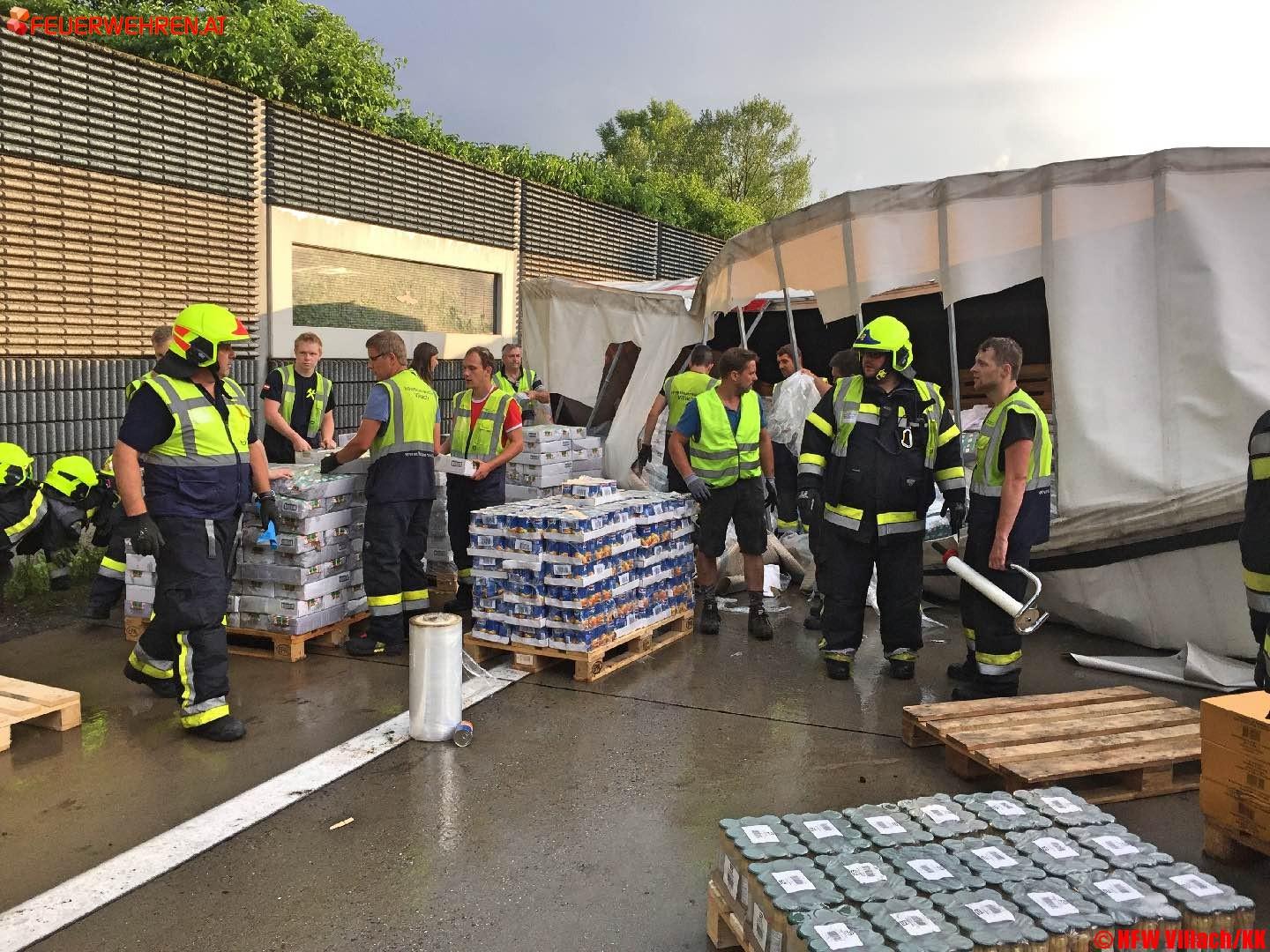 Mühsam musste gemeinsam mit der FF Wernberg die verstreute Ladung händisch auf neue Holzpaletten umgeschlichtet werden.