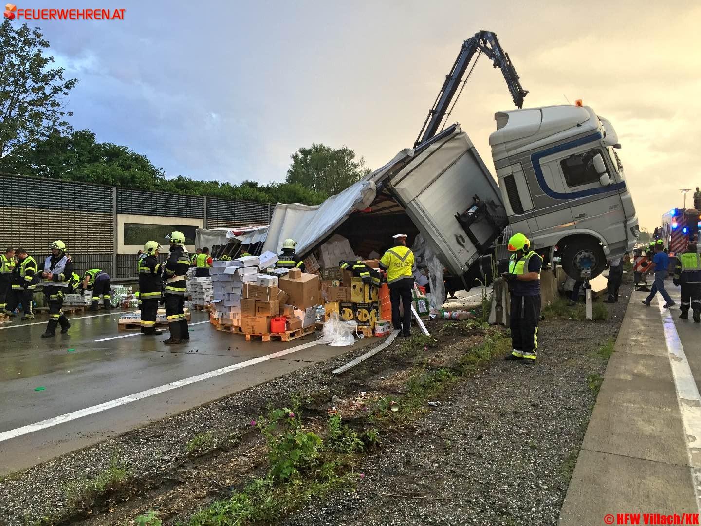 Kurz nach 18 Uhr wurde die Hauptfeuerwache Villach gemeinsam mit der FF Wernberg zu einem schweren LKW Unfall auf die A2 Südautobahn in Fahrtrichtung Klagenfurt alarmiert.
