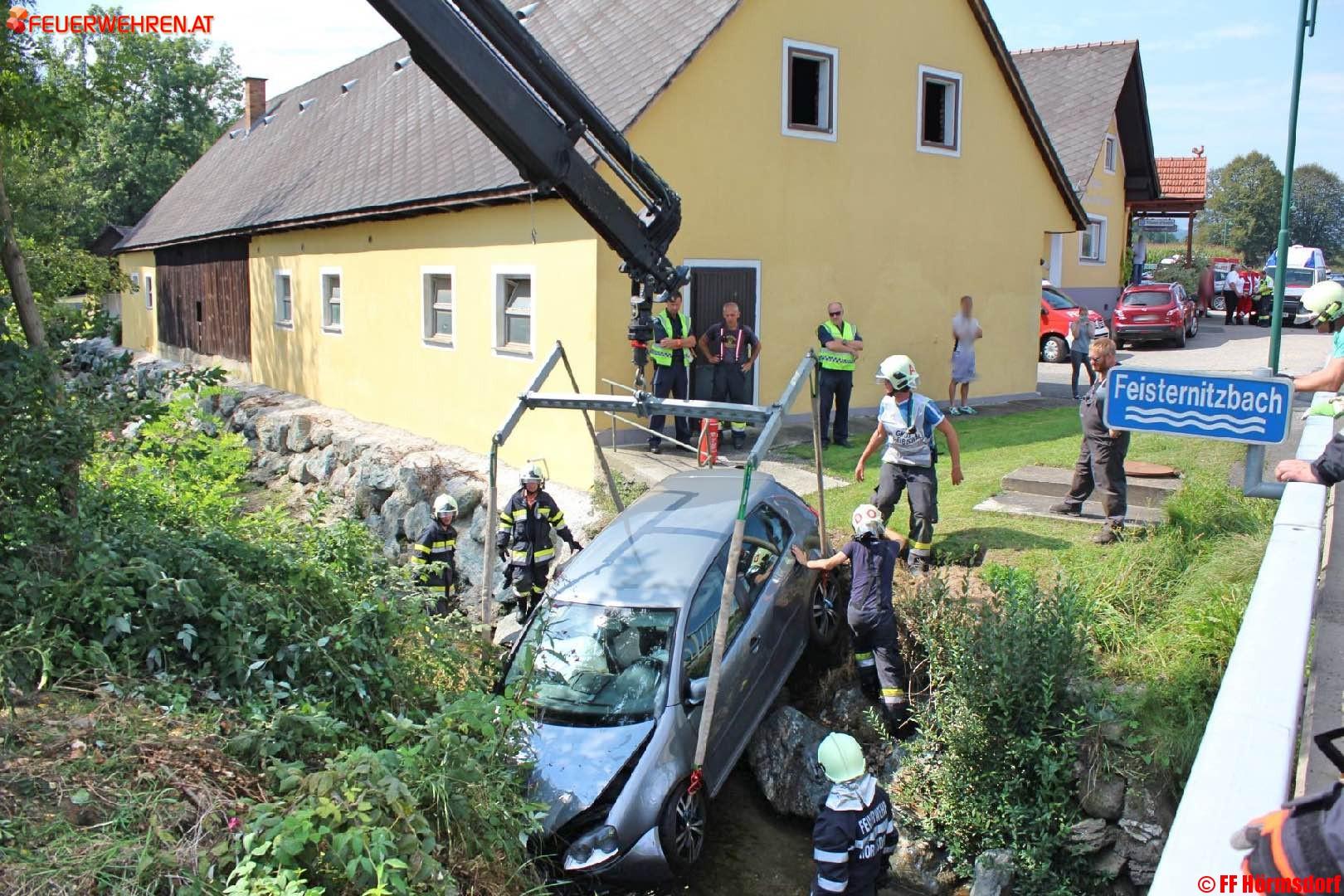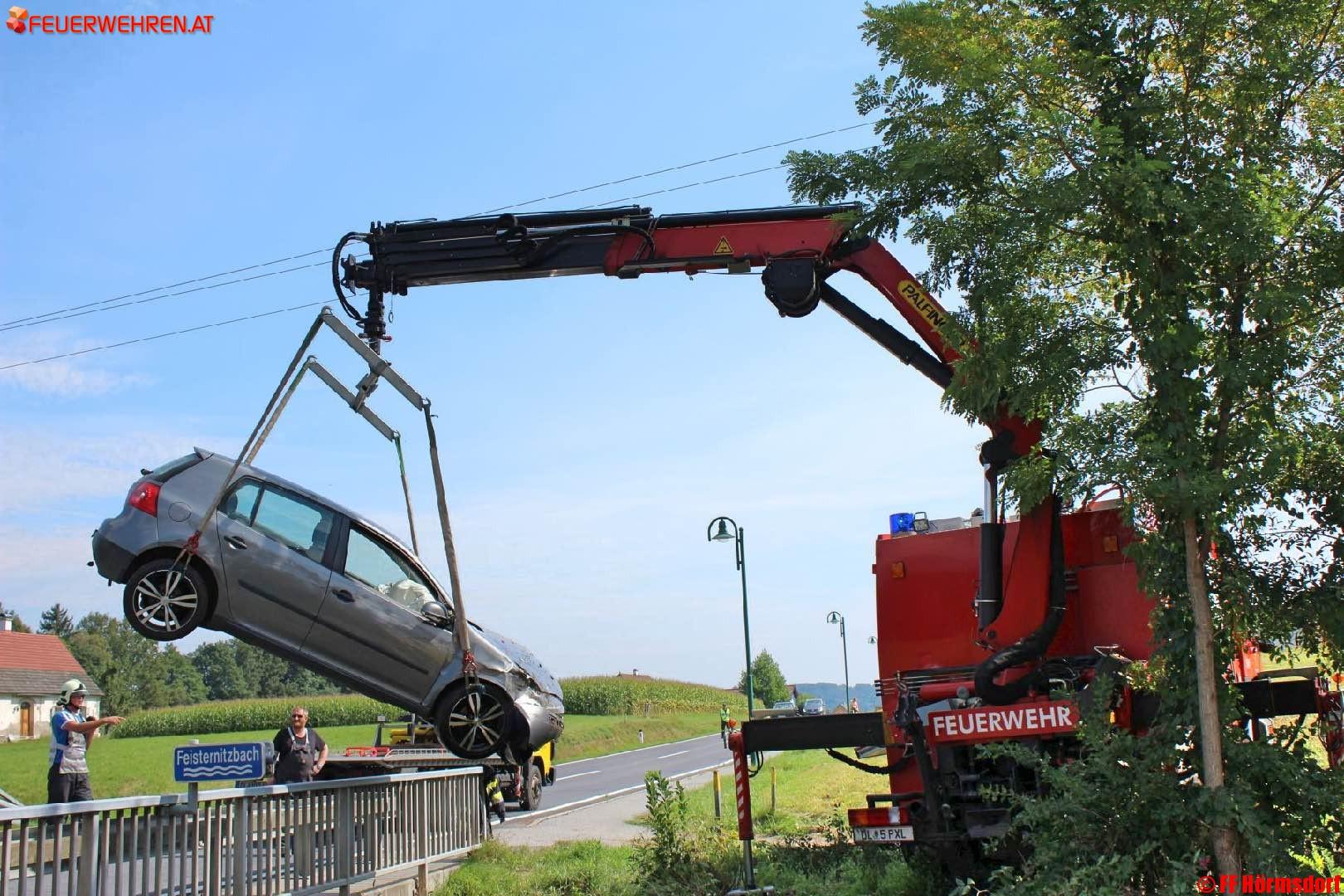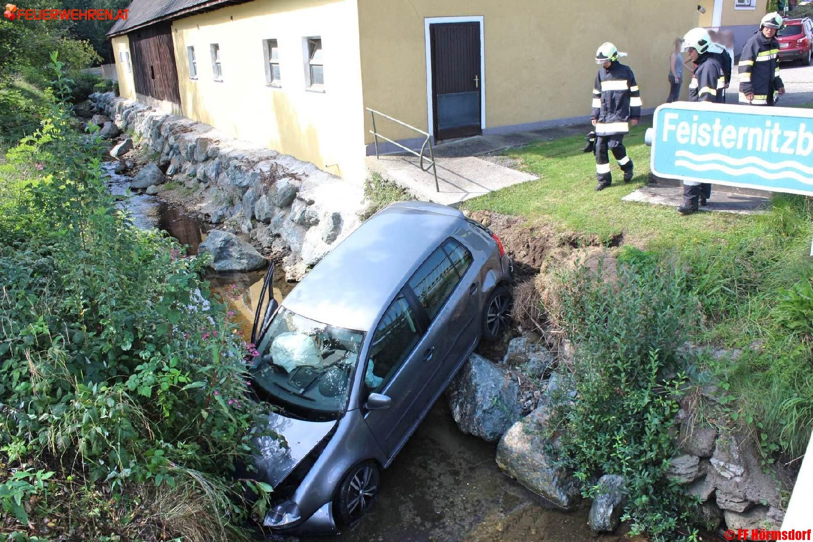 Dabei reagierte der junge Lenker, selbst Mitglied der FF Pitschgau-Haselbach noch geistesgegenwärtig und versuchte, nachdem er im Rückspiegel gesehen hatte, dass der nachkommende Lenker nicht langsamer wird, sein Fahrzeug nach rechts in einen Parkplatz zu steuern. Er konnte somit wohl ein größeres Unglück verhindern. Dennoch wurde sein PKW erfasst und rechts in einen Bach katapultiert.