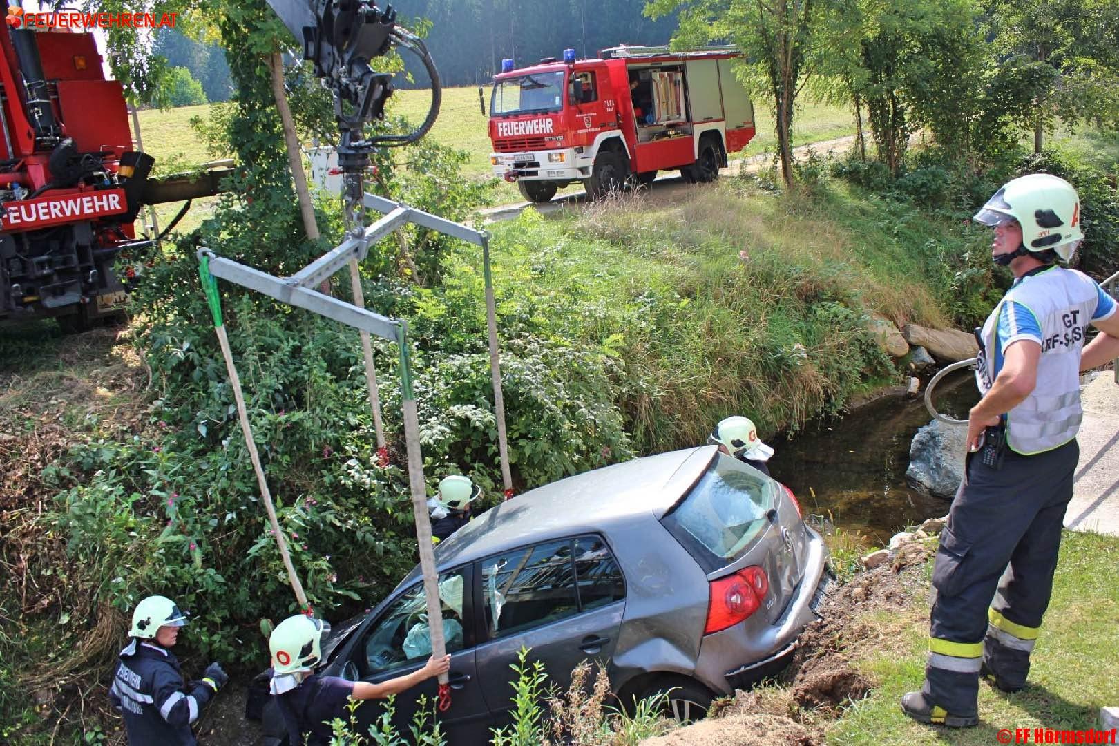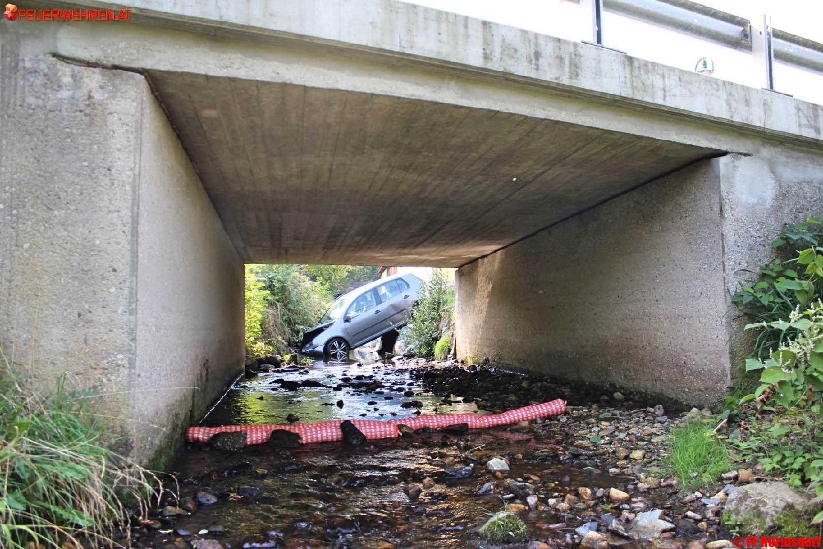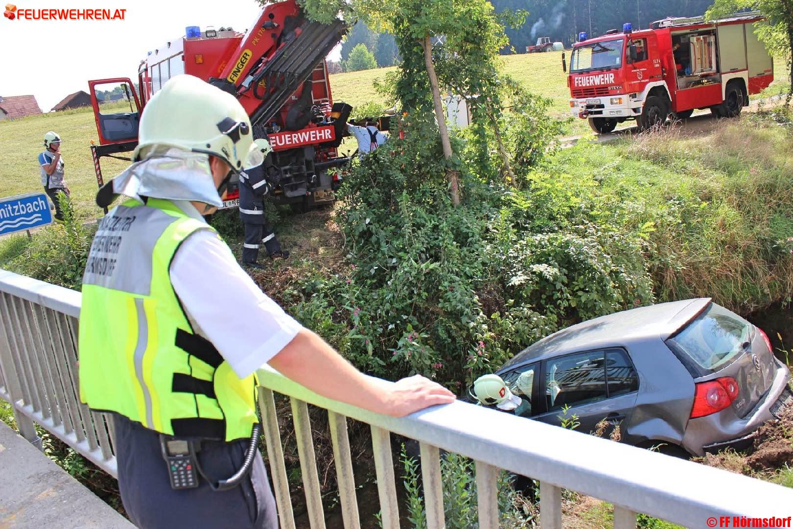 Dabei reagierte der junge Lenker, selbst Mitglied der FF Pitschgau-Haselbach noch geistesgegenwärtig und versuchte, nachdem er im Rückspiegel gesehen hatte, dass der nachkommende Lenker nicht langsamer wird, sein Fahrzeug nach rechts in einen Parkplatz zu steuern. Er konnte somit wohl ein größeres Unglück verhindern. Dennoch wurde sein PKW erfasst und rechts in einen Bach katapultiert.