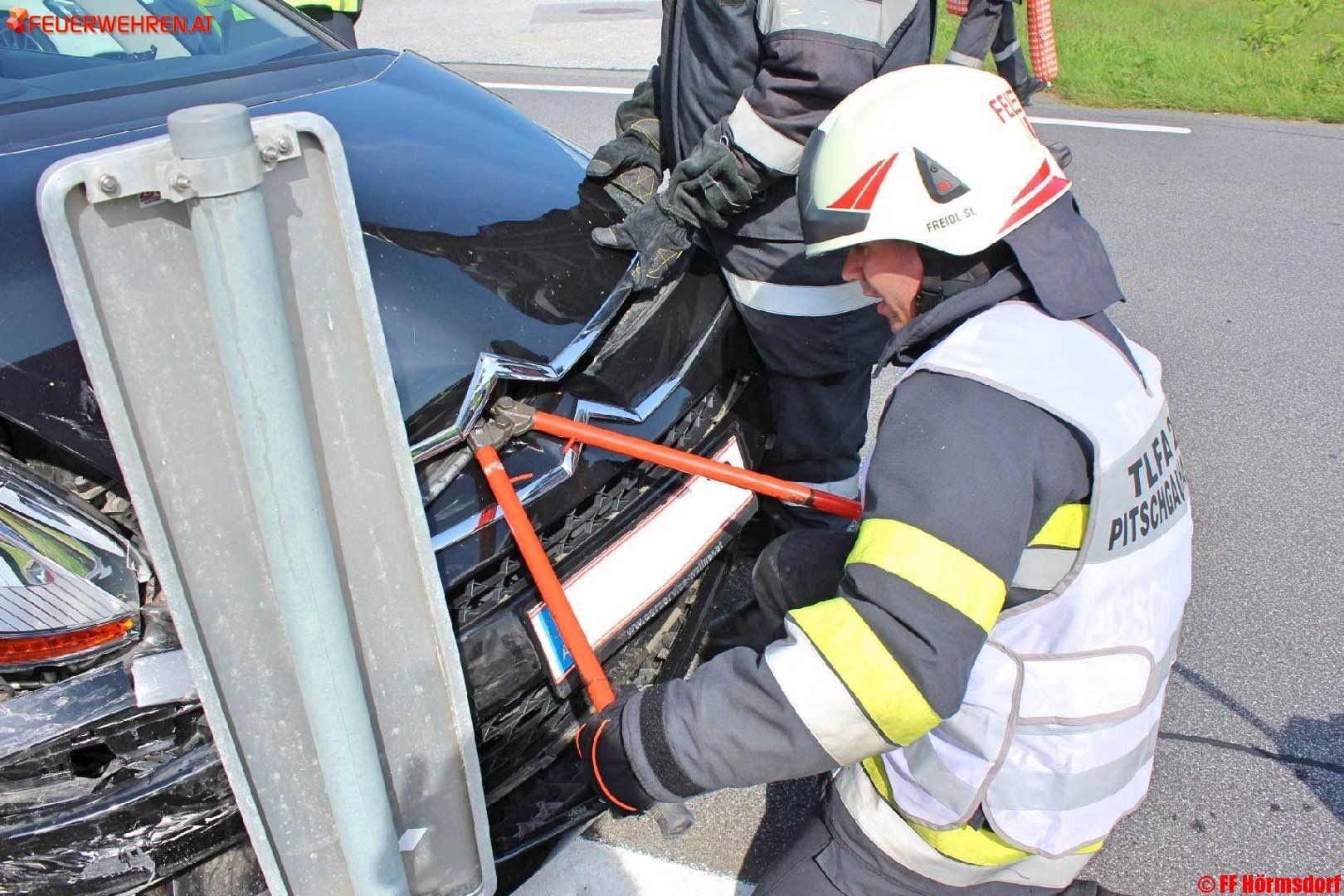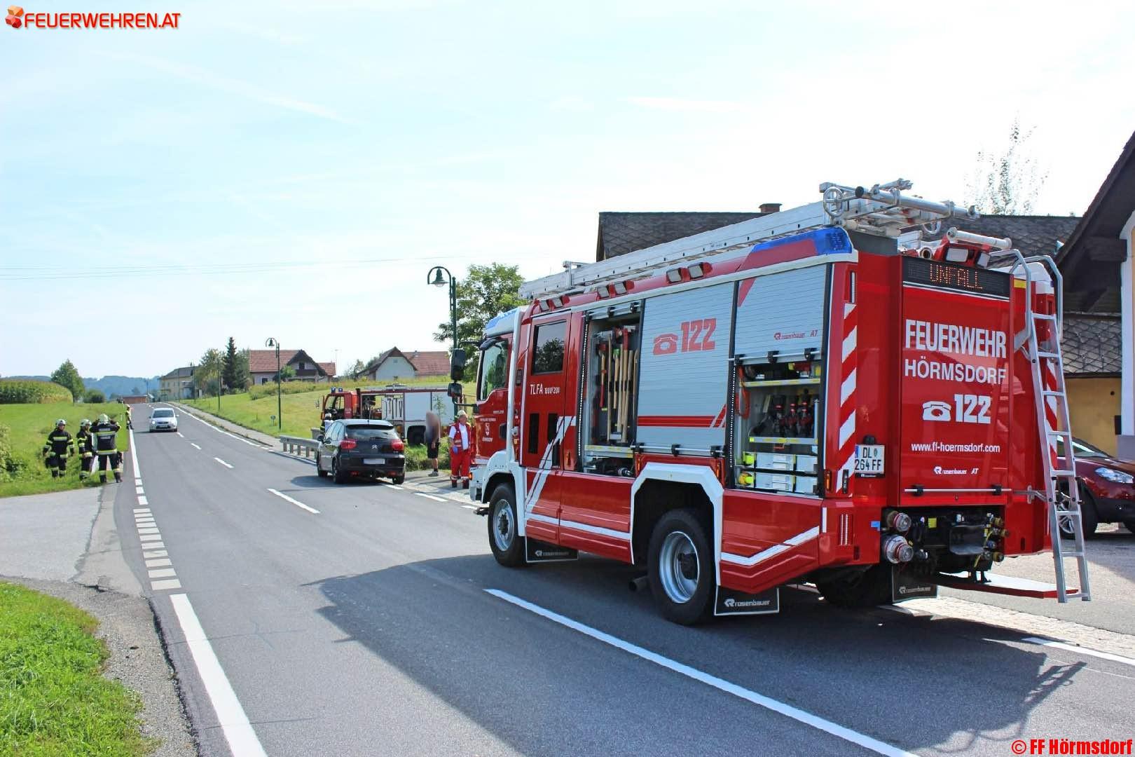 Um 10.48 Uhr wurde die Freiwillige Feuerwehr Hörmsdorf zum Einsatz alarmiert. Kameraden der FF Pitschgau-Haselbach, die die Unfallstelle passiert hatten, rückten ebenfalls zum Einsatz aus. Ein Linksabbieger hatte aufgrund einer entgegen kommenden Motorradkollonne angehalten, ein nachkommender Autofahrer war ihm dabei aufgefahren.