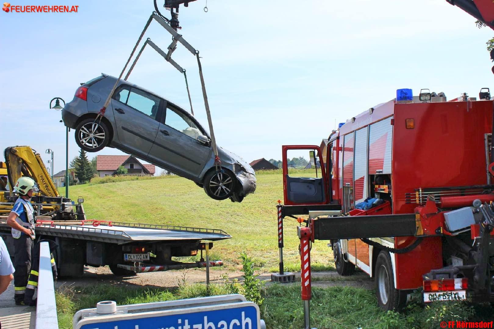 Am Vormittag des 04.09. kam es auf der B69 in Hörmsdorf (Marktgemeinde Eibiswald) zu einem spektakulären Verkehrsunfall. Ein PKW wurde dabei in einen Bach katapultiert, ernsthaft verletzt wurde aber zum Glück niemand.