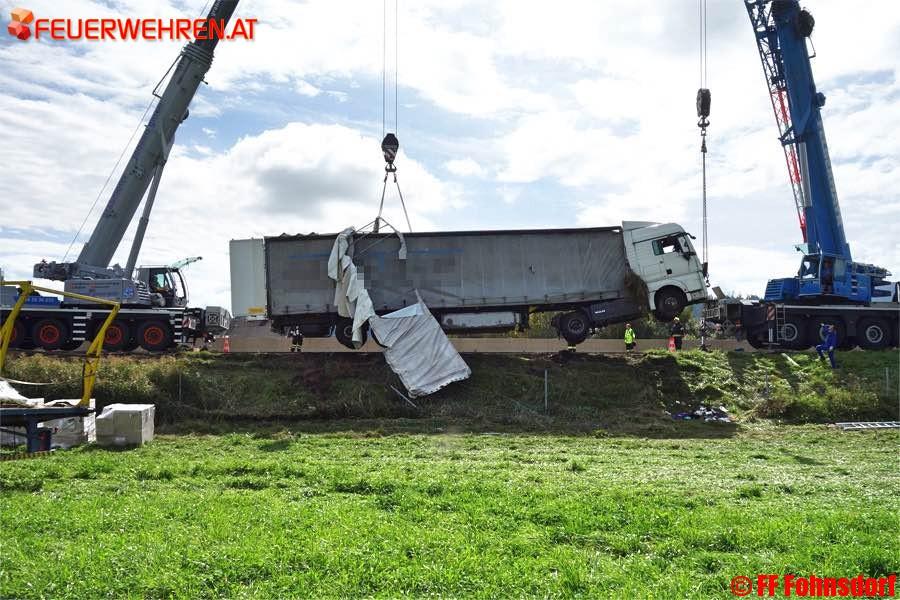 Zu einem zeitintensiven Einsatz wurden die Feuerwehren Judenburg und Fohnsdorf am frühen Morgen des 19. September alarmiert. Aus bisher nicht bekannter Ursache verlor ein Fahrer eines Sattelzuges die Herrschaft über sein Fahrzeug und stürzte über die Böschung der Murtalschnellstraße S36.