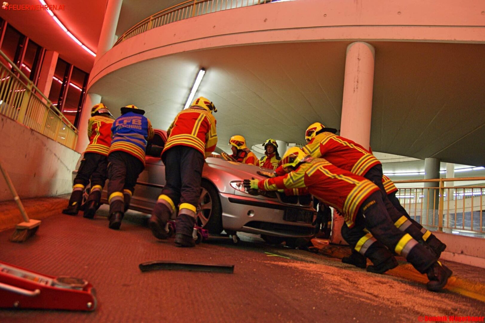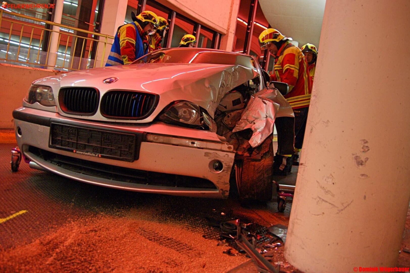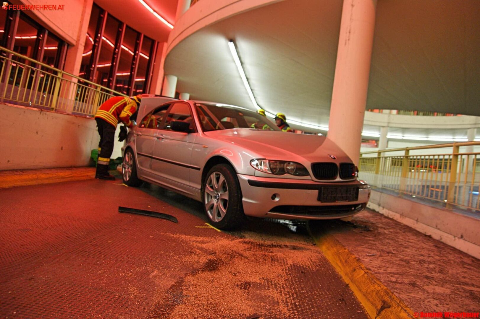 Zu einem ungewöhnlichen Verkehrsunfall in ein Parkhaus wurde die Freiwillige Feuerwehr Pasching Freitagabend, 30. September 2016 um ca. 19.30 Uhr alarmiert.