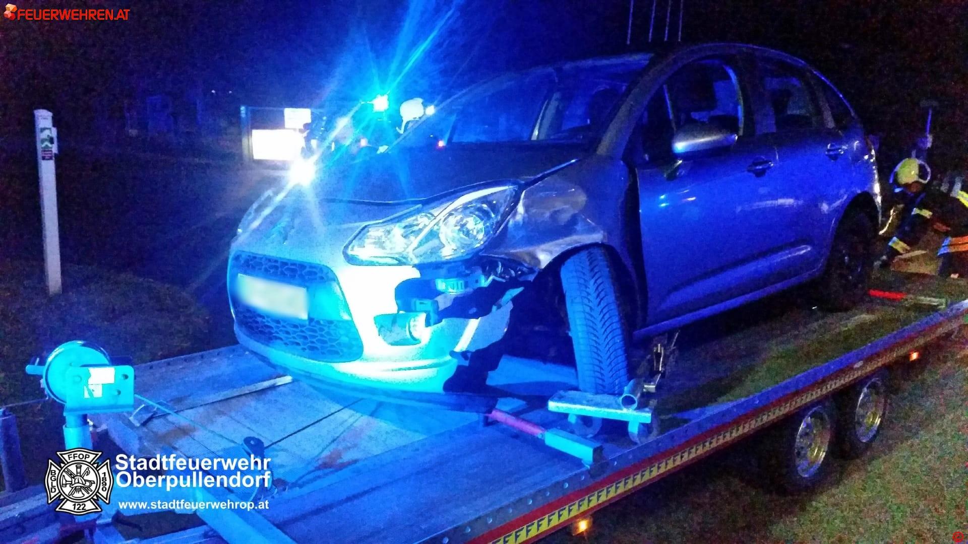 Nachdem ausgetretenes Öl und Kraftstoff gebunden worden sind, konnte die Stadtfeuerwehr das verunfallte Fahrzeug auf einen gesicherten Abstellplatz bringen. Der Fahrzeuglenker wurde bei dem Unfall nicht verletzt.