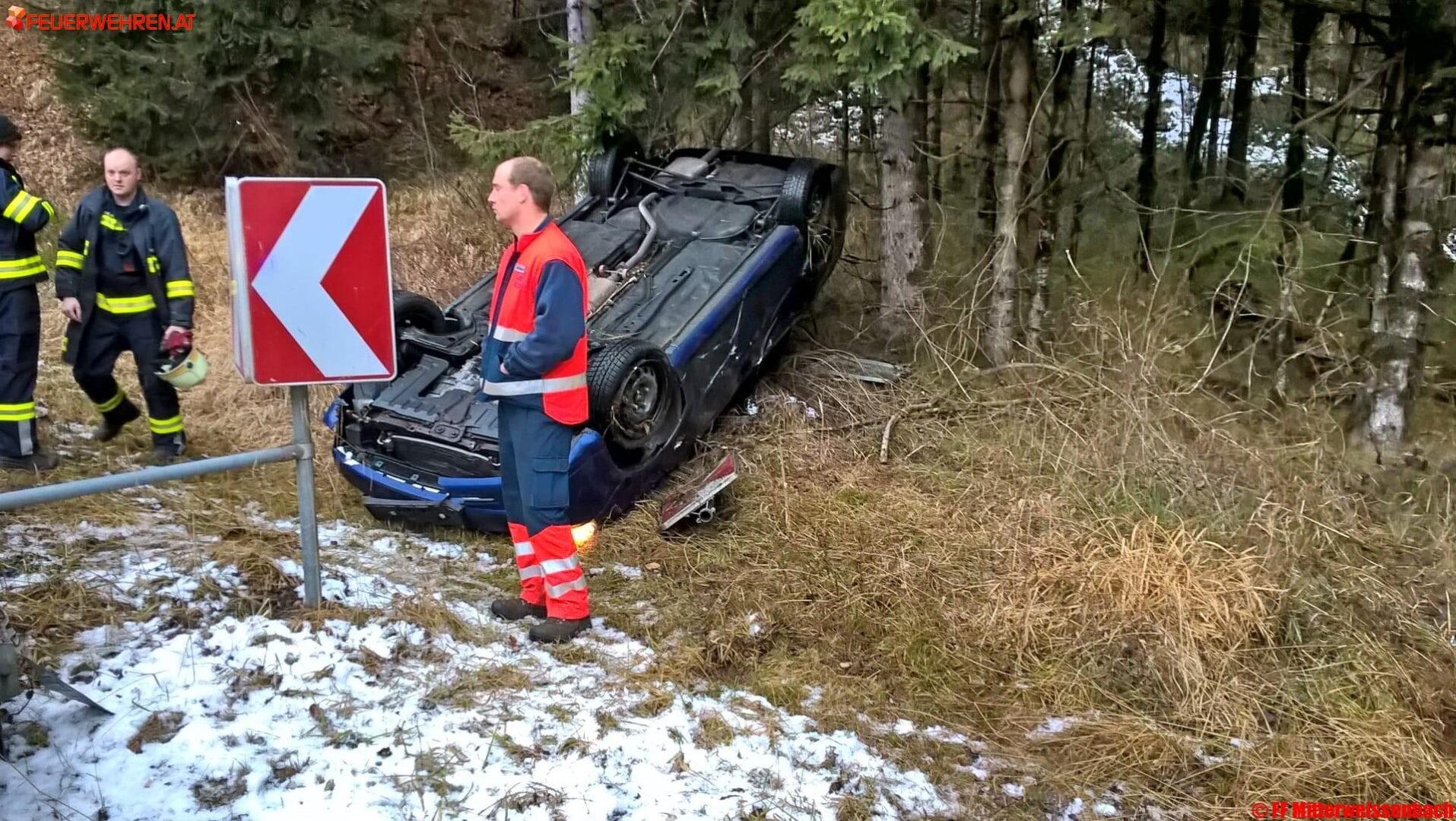 Am Samstag den 24.12.2016 wurden die Kameraden der FF Mitterweissenbach zu einer Fahrzeugbergung auf der B153 alarmiert. Bei der Ankunft fanden die Feuerwehrmitglieder ein Fahrzeug, welches nach einem Überschlag auf dem Dach zu liegen kam, vor.