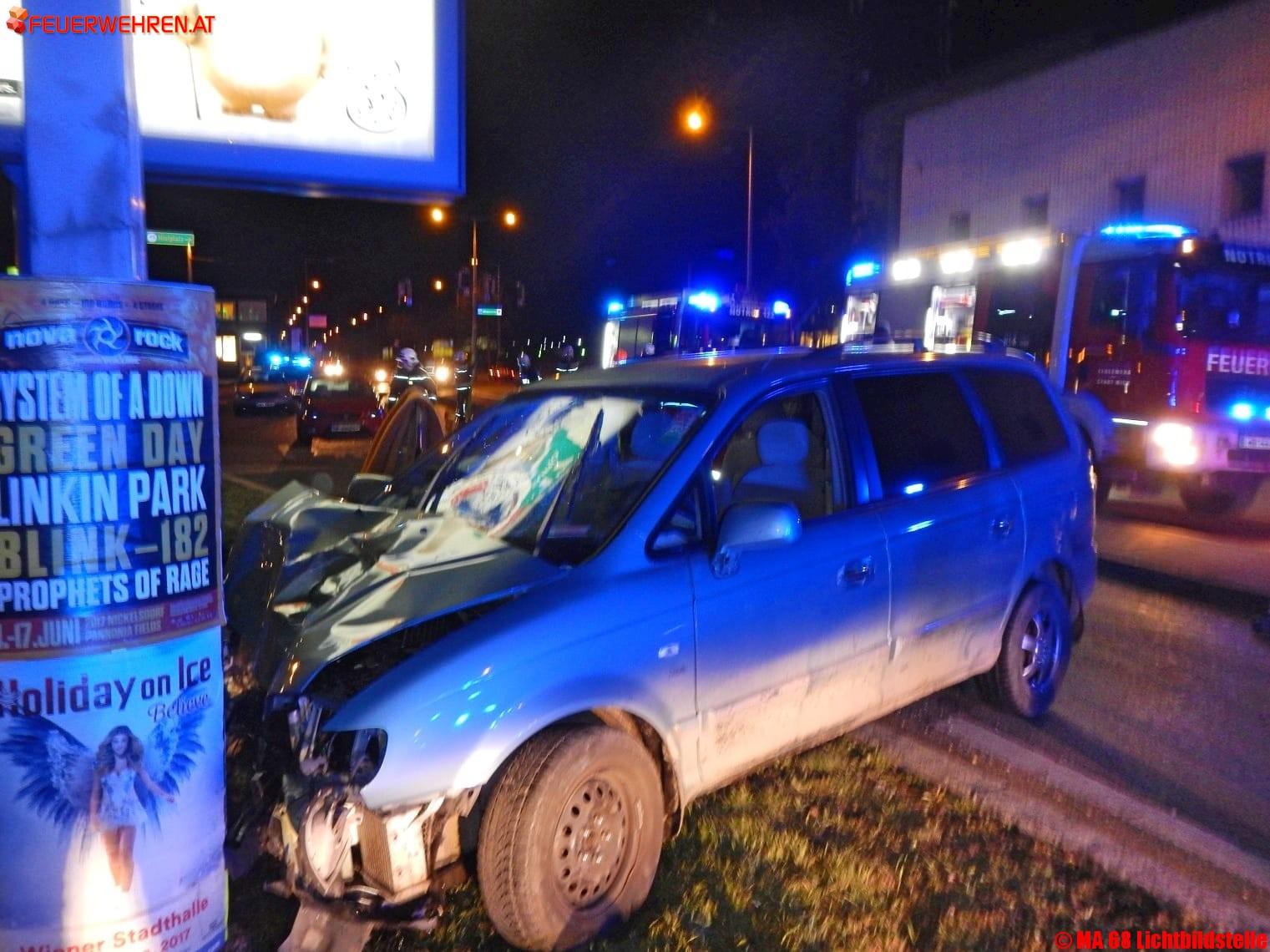 Schwere Kopfverletzungen zog sich der Fahrer eines Pkw bei einem Verkehrsunfall in der Brunner Straße in der Nacht in Liesing zu. Aus unbekannter Ursache kam der Mann mit seinem Fahrzeug von der Fahrbahn ab, riss auf dem Mittelstreifen eine Verkehrsampel aus dem Boden und prallte anschließend gegen einen Lichtmast.
