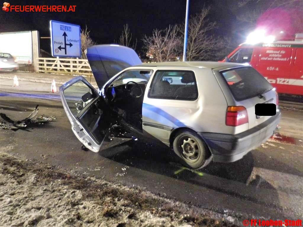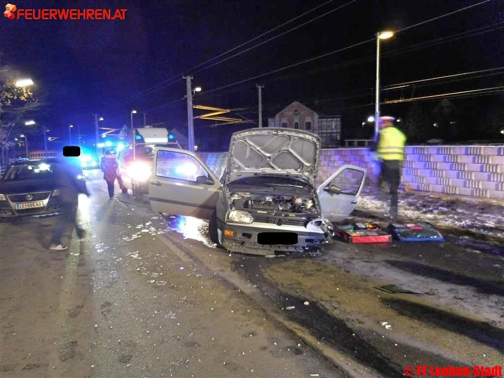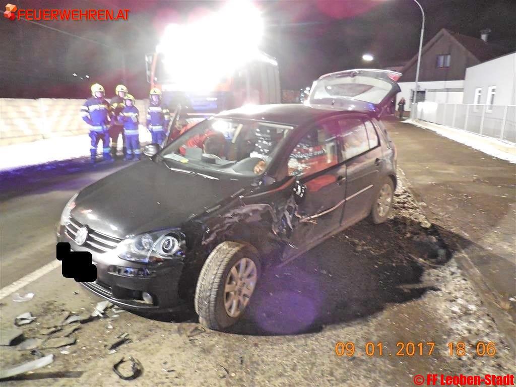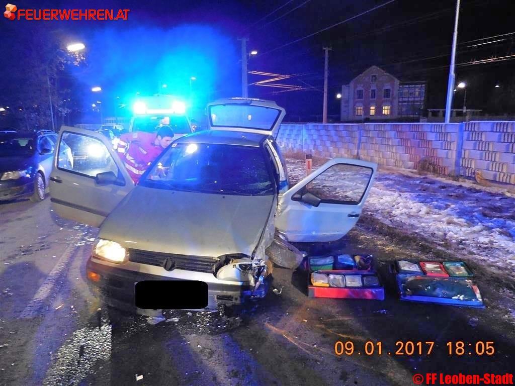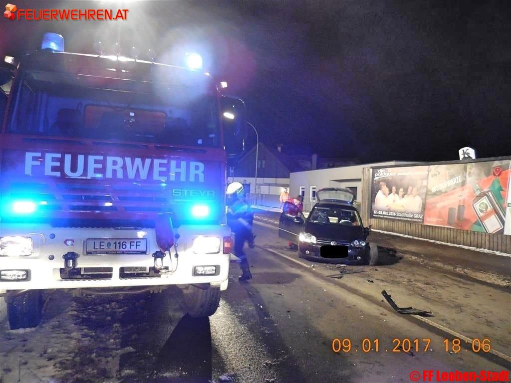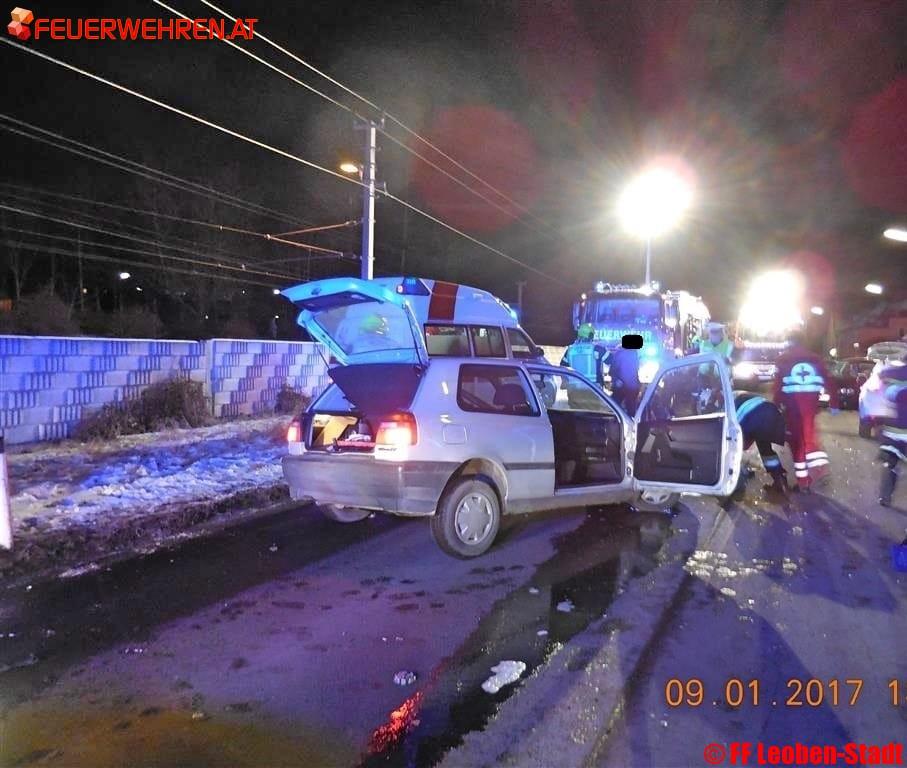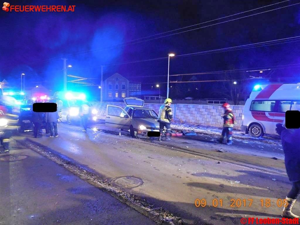 Am 09.01.2017 um 17:55 Uhr alarmierte die Bereichsfunkleitstelle Florian Leoben die Freiwillige Feuerwehr Leoben-Stadt und die Freiwillige Feuerwehr Leoben-Göß mit dem Alarmstichwort „T10-VU-eingekl. P. Südbahnstraße Höhe GH Altmann“ zu einem Verkehrsunfall.