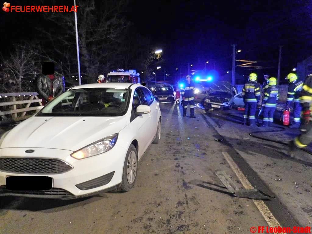 Die im Fußbereich eingeklemmte Person konnte sehr rasch befreit und den Rettungskräften zur Betreuung übergeben werden. Parallel wurde die Unfallstelle abgesichert, ausgeleuchtet und ein Brandschutz aufgebaut. Die Verletzten wurden vor Ort vom Roten Kreuz versorgt und betreut. Anschließen wurde eine verletzte Person in das LKH Hochsteiermark eingeliefert.