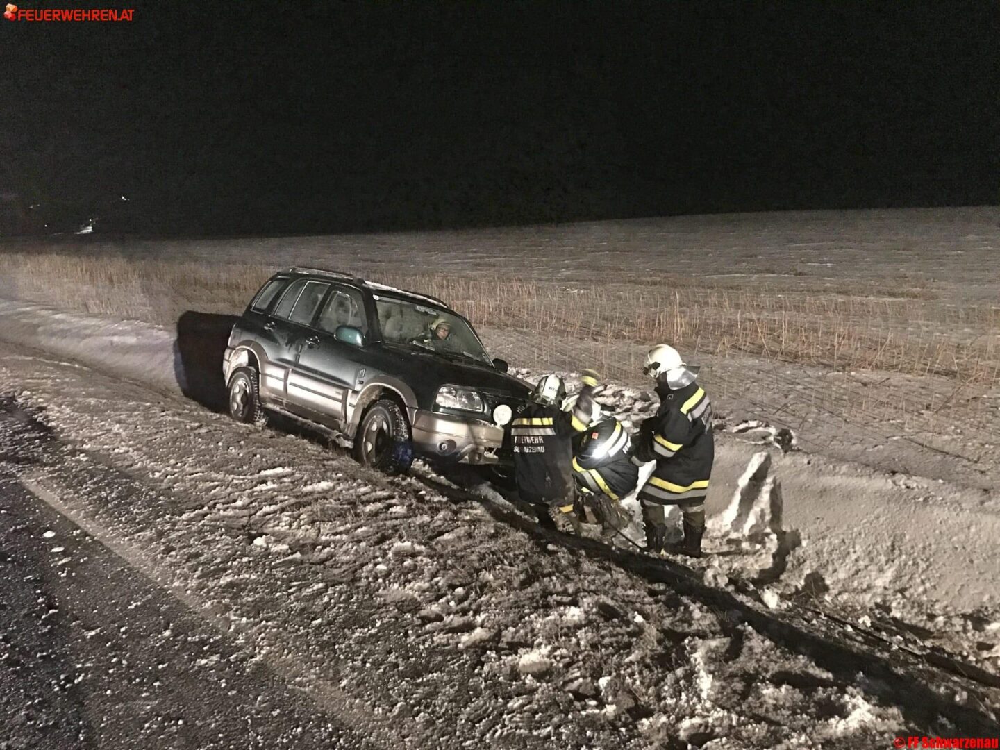 „Hier Florian Niederösterreich, 00:47 Uhr, technischer Einsatz für die Feuerwehr Schwarzenau! Fahrzeugbergung auf der LB2, Stkm 92, ein PKW, Ende!“ Mit dieser Alarmierung wurden wir am 06.01.2017 aus dem Schlaf gerissen.