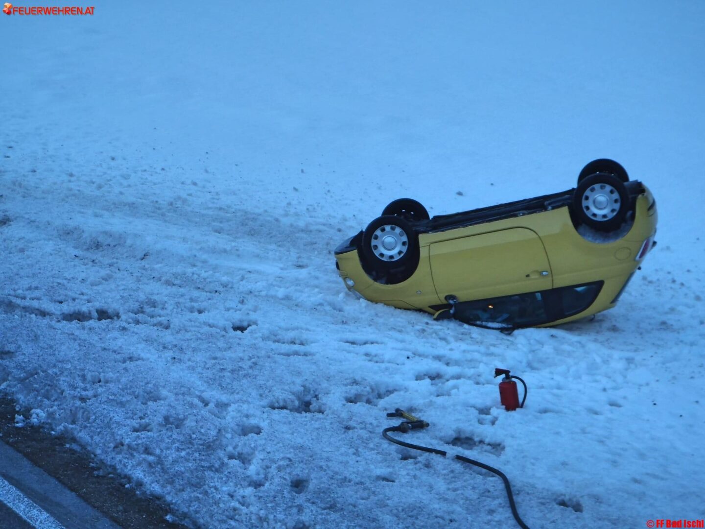 Nach der frühmorgendlichen Fahrzeugbergung wurden die Ischler Florianis erneut zu einem Fahrzeugüberschlag gerufen.