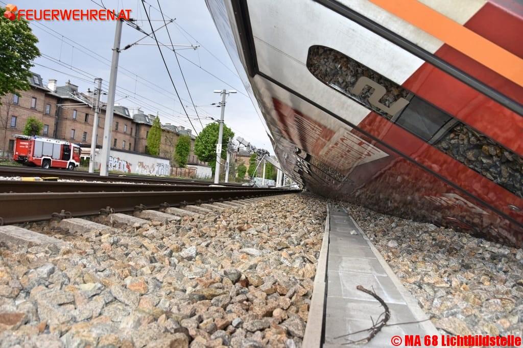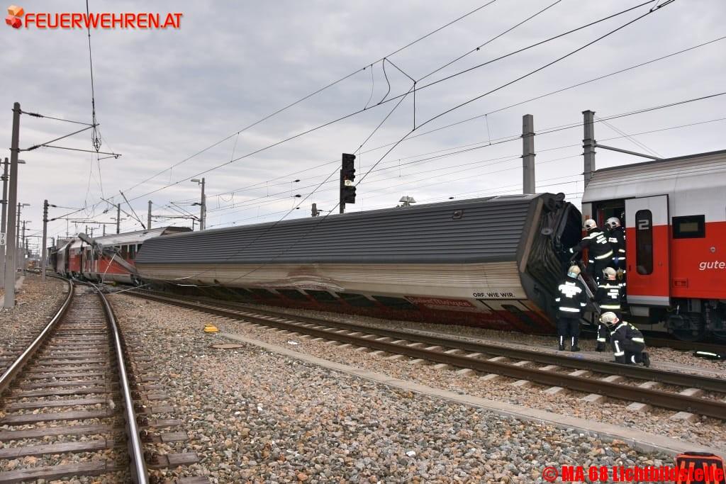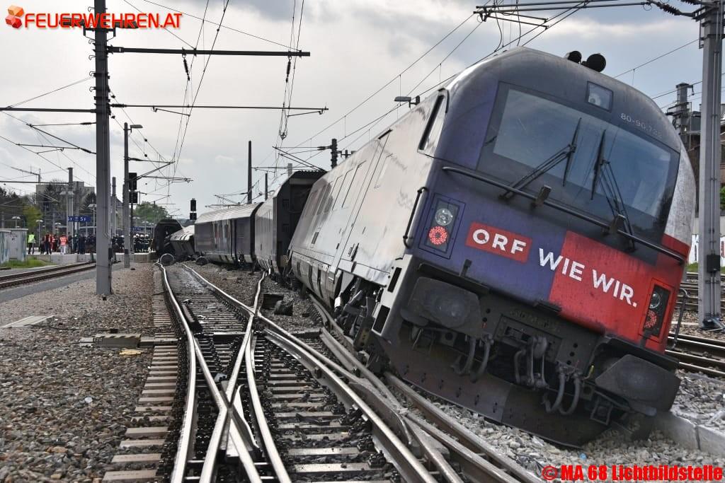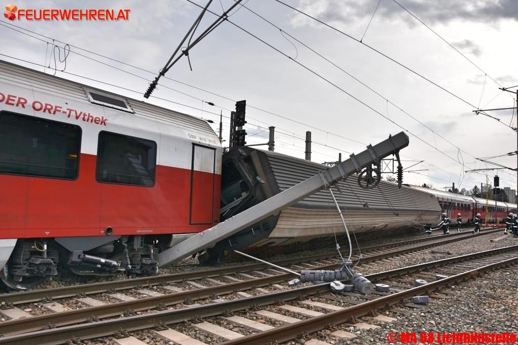 Bei einem Zugsunglück am Bahnhof Wien-Meidling entgleisten heute Nachmittag mehrere Waggons. Die Berufsfeuerwehr Wien löste Alarmstufe zwei aus und rückte mit zahlreichen Spezialfahrzeugen an.