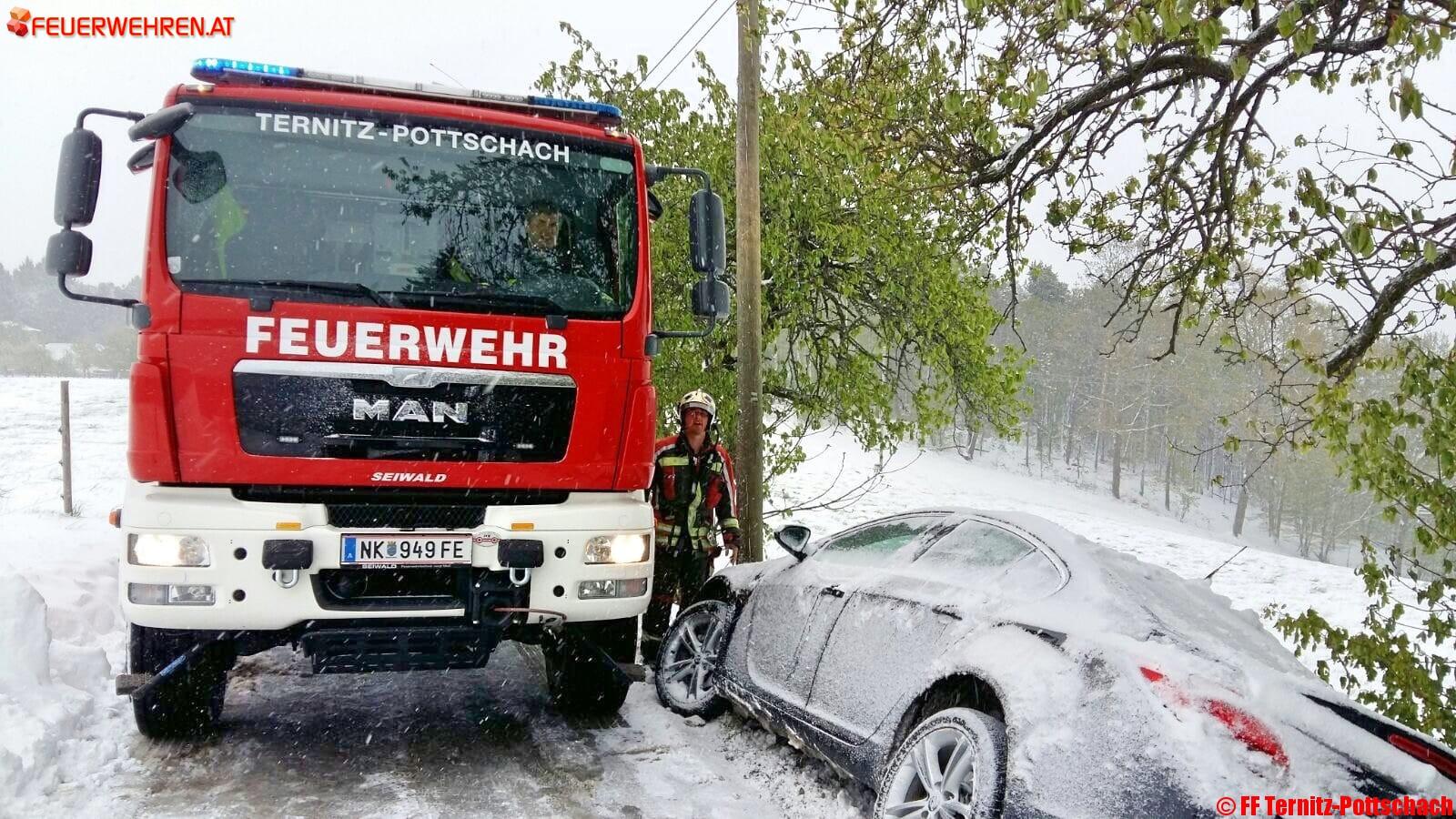 Am 20.04.2017 um 07:26 Uhr wurde die Feuerwehr Ternitz-Pottschach zu einer Fahrzeugbergung nach Buchbach in die Quellenstrasse nähe Zigeunergraben alarmiert. Ein Lenker kam auf Grund der winterlichen Fahrverhältnisse von der Fahrbahn ab und kam im Straßengraben zum Stillstand.