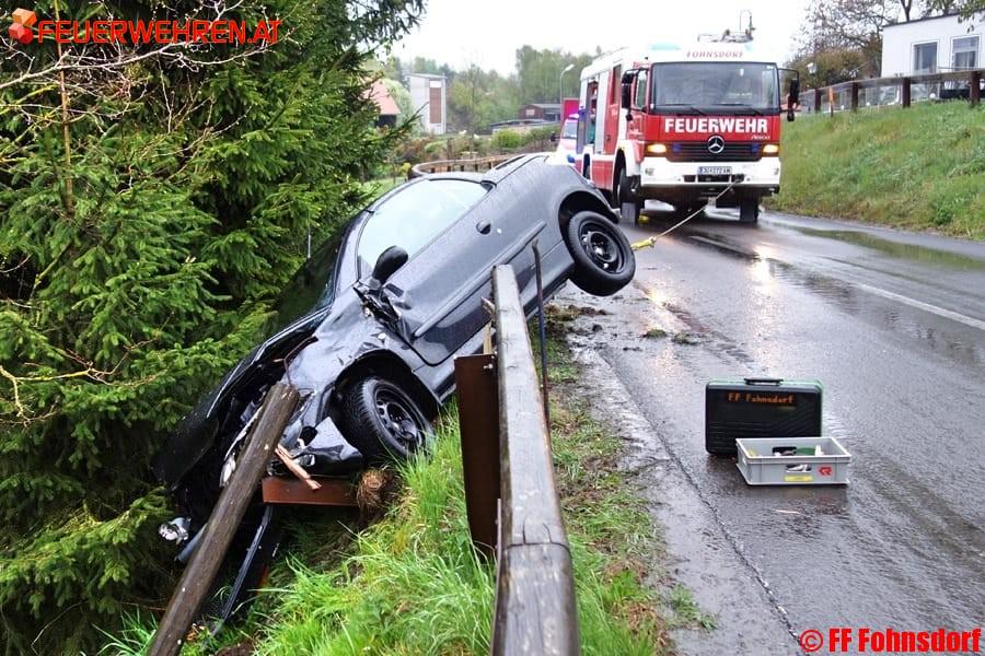 Ein Verkehrsunfall endete am Donnerstagabend, den 27. April, im Fohnsdorfer Ortsteil Wasendorf glimpflich. Gegen 18:20 Uhr kam eine Fahrerin auf der Landstraße 535 von der regennassen Fahrbahn ab und prallte gegen die Streckenbegrenzung.