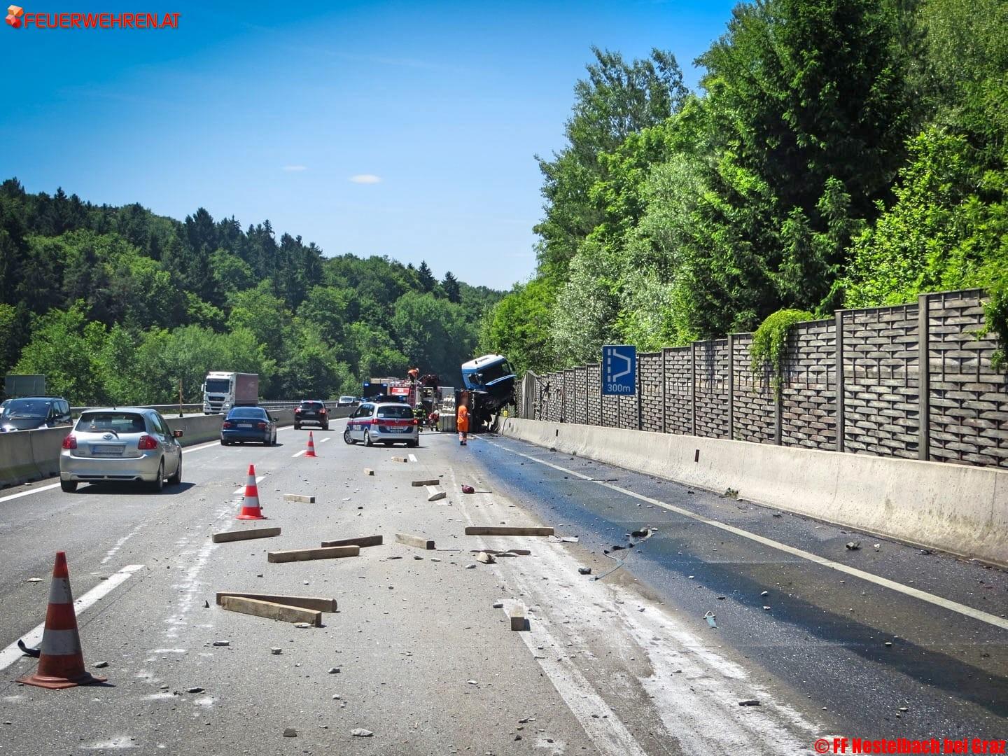 Nach dem Aufprall mit der Betonleitschiene knickte der Sattelzug ein und schlitterte hunderte Meter die Südautobahn entlang. Dabei zog sich der Lenker leichte Verletzungen zu, beim Aufprall wurde die Zugmaschine stark beschädigt, wo sich dadurch Betriebsmittel des LKW über hunderte Meter auf der Autobahn verteilten. Als der LKW – Zug zum Liegen kam, begann der Tieflader im hinteren Bereich des LKW zu brennen.