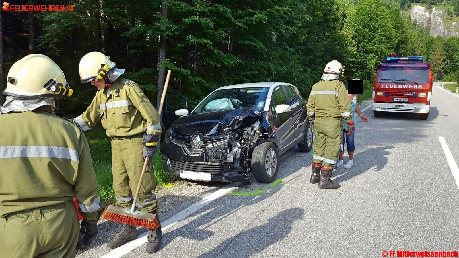 Nach der Unfallaufnahme durch Beamte der Polizeiinspektion Bad Ischl begannen die Kameraden der FF Mitterweissenbach mit der Reinigung der Fahrbahn und halfen beim Abtransport der verunfallten Fahrzeuge durch den ARBÖ Bad Ischl.
