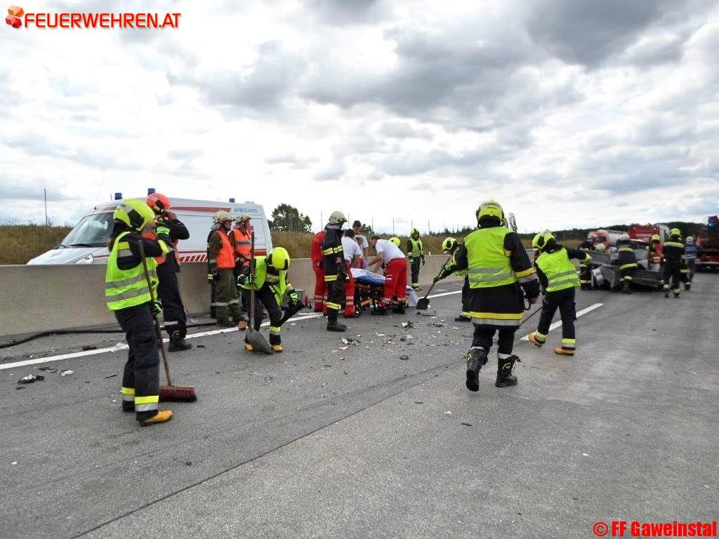 Nach dem Eintreffen wurde die Unfallstelle abgesichert, der Brandschutz aufgebaut. Die verletzten Personen wurden aus den Fahrzeugen gerettet und von den Sanitätern des Roten Kreuzes erstversorgt und in das Krankenhaus Mistelbach gebracht. Die kaputten, nicht fahrbereiten Fahrzeuge wurden auf Anweisung der Autobahnpolizei von der Autobahn entfernt und sichergestellt.