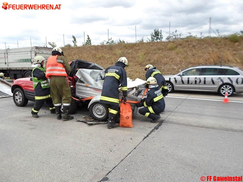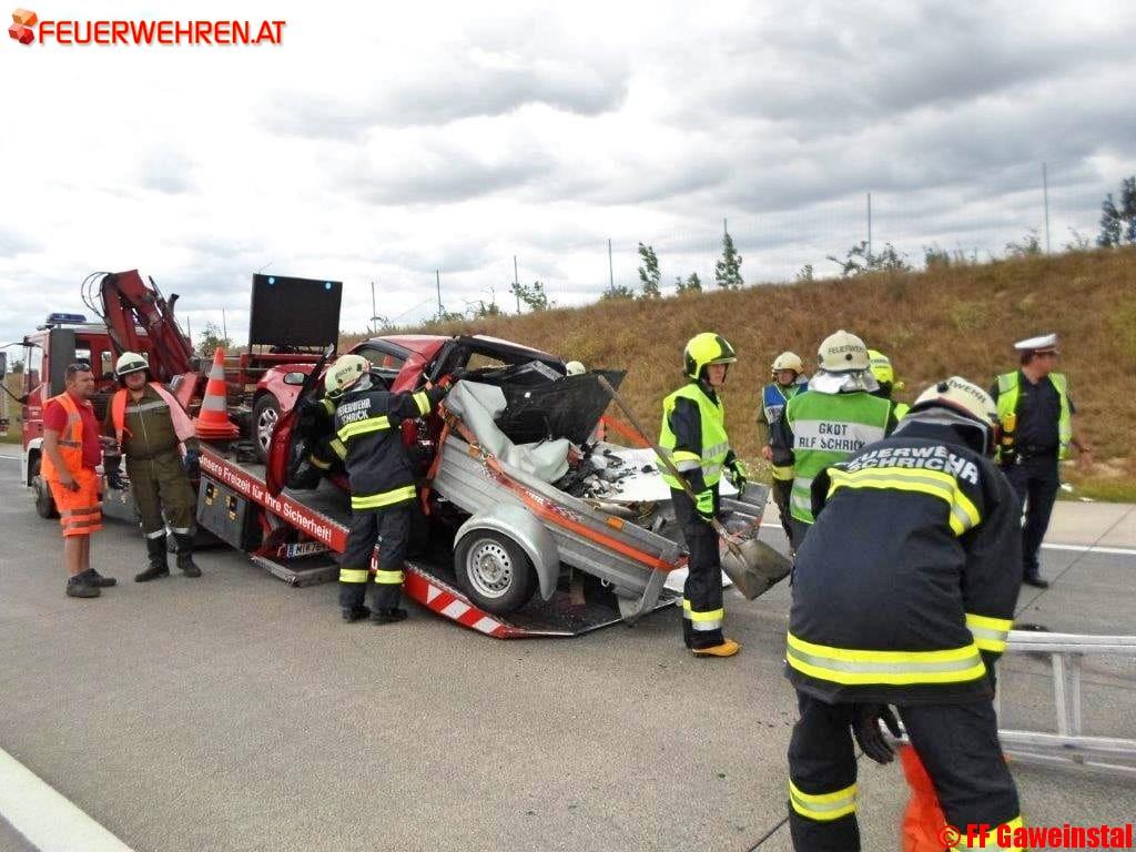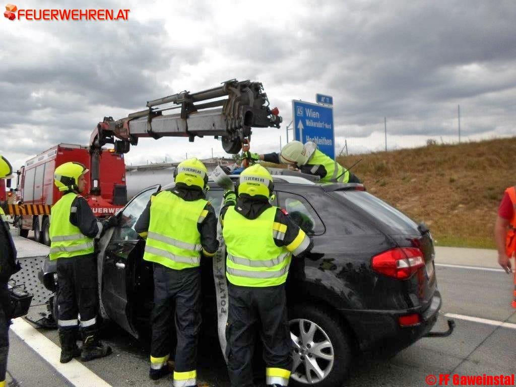 Am Dienstag, den 25.7.2017 wurden die Freiwillige Feuerwehr Gaweinstal und Schrick um 11:10 Uhr mittels Sirene, Pager und SMS zu einem Verkehrsunfall mit Menschenrettung auf die A5 Nordautobahn bei Kilometer 12,5 gerufen.