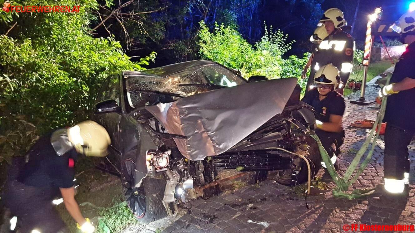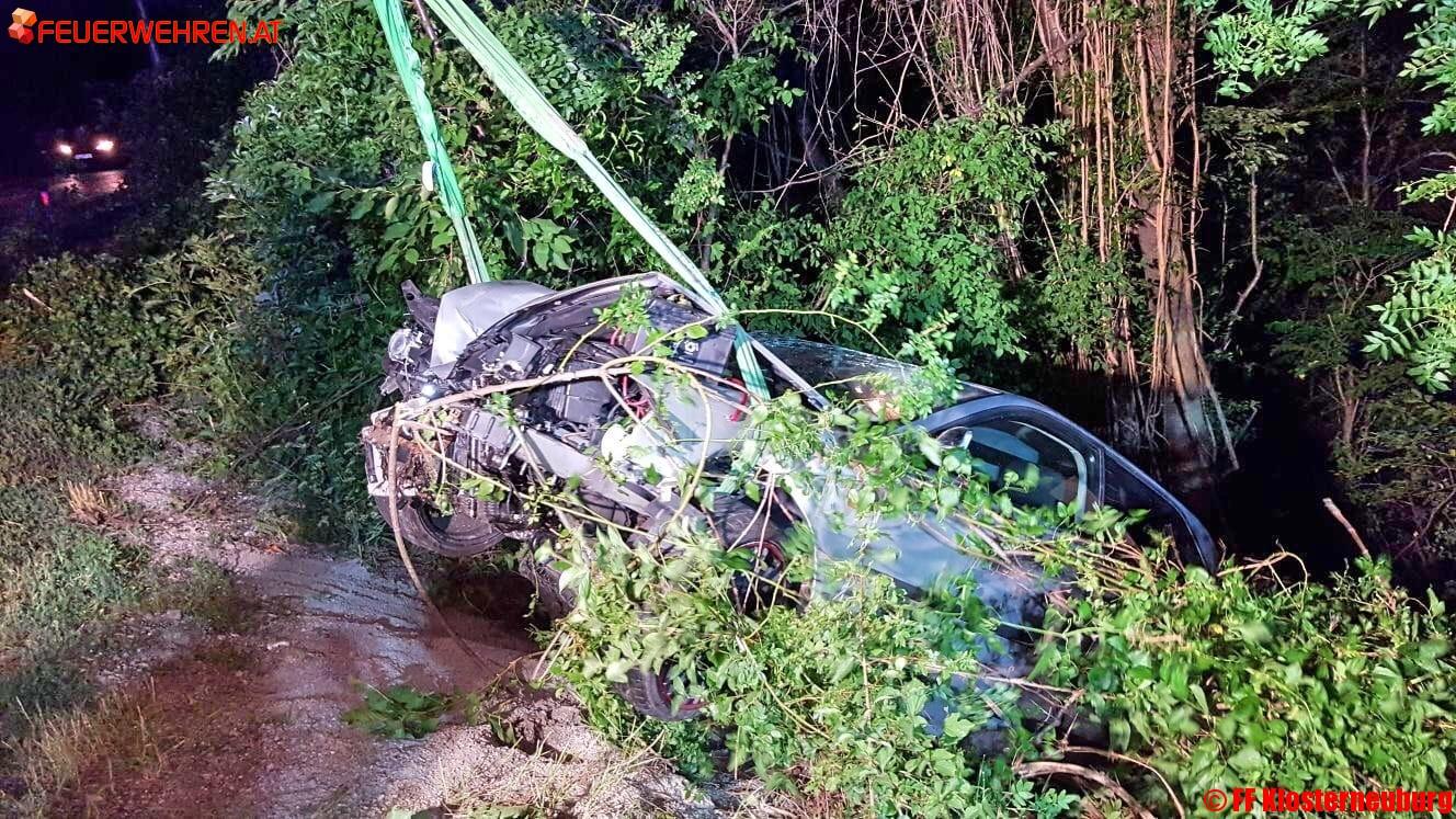 Um das Fahrzeug bergen zu können mussten durch die Einsatzkräfte der Feuerwehr Klosterneuburg zunächst ein paar Bäume sowie einige Büsche entfernt werden. Erst danach konnte das Unfallfahrzeug mit dem Kran des Wechselladerfahrzeuges geborgen werden.