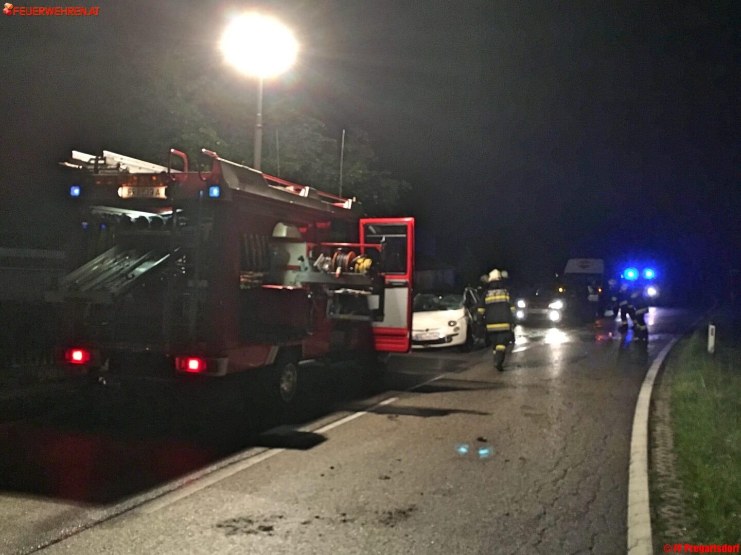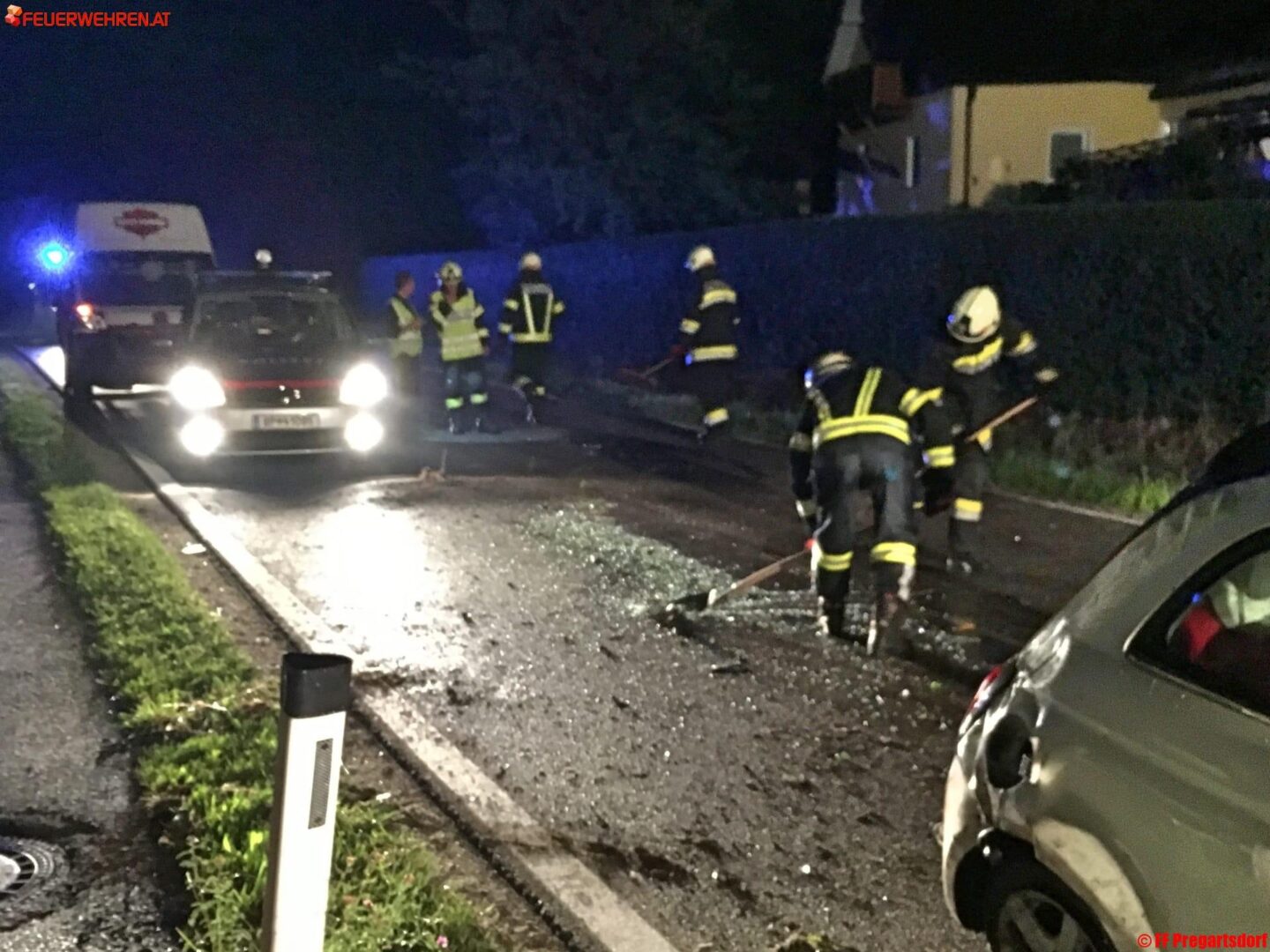 Kurz nach Mitternacht kam es auf der Gutauer Landesstraße im Ortsteil Pregartsdorf, Gemeinde Pregarten, zu einem Verkehrsunfall.