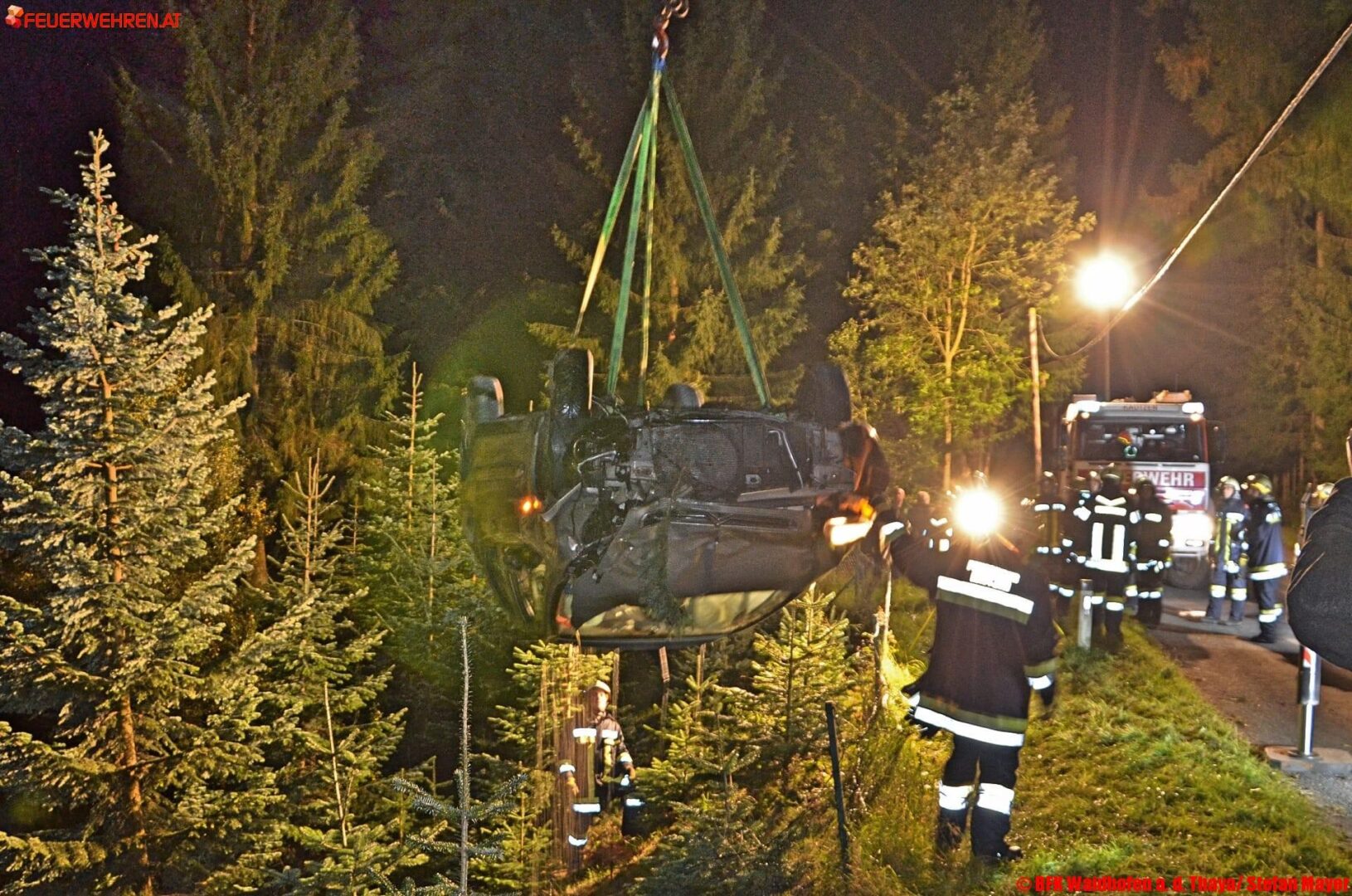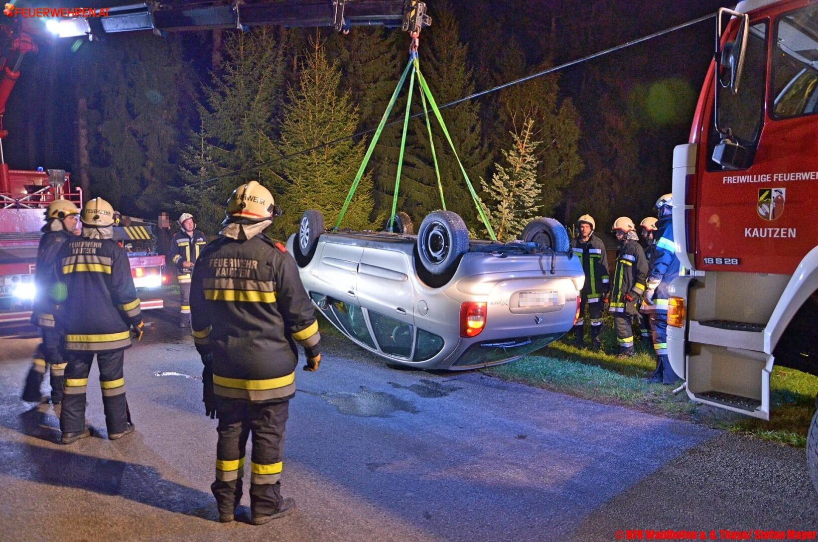 Die Ersthelfer konnten die Frau rasch aus dem Fahrzeug befreien. Sie blieb, angesichts des Unfallherganges wie durch ein Wunder völlig unverletzt. Nach der Unfallaufnahme durch die Polizei wurde der PKW von der Feuerwehr Kautzen geborgen und gesichert abgestellt. Nach rund zwei Stunden war der Einsatz beendet. Während der Bergungsarbeiten war die Landesstraße für den Verkehr gesperrt.