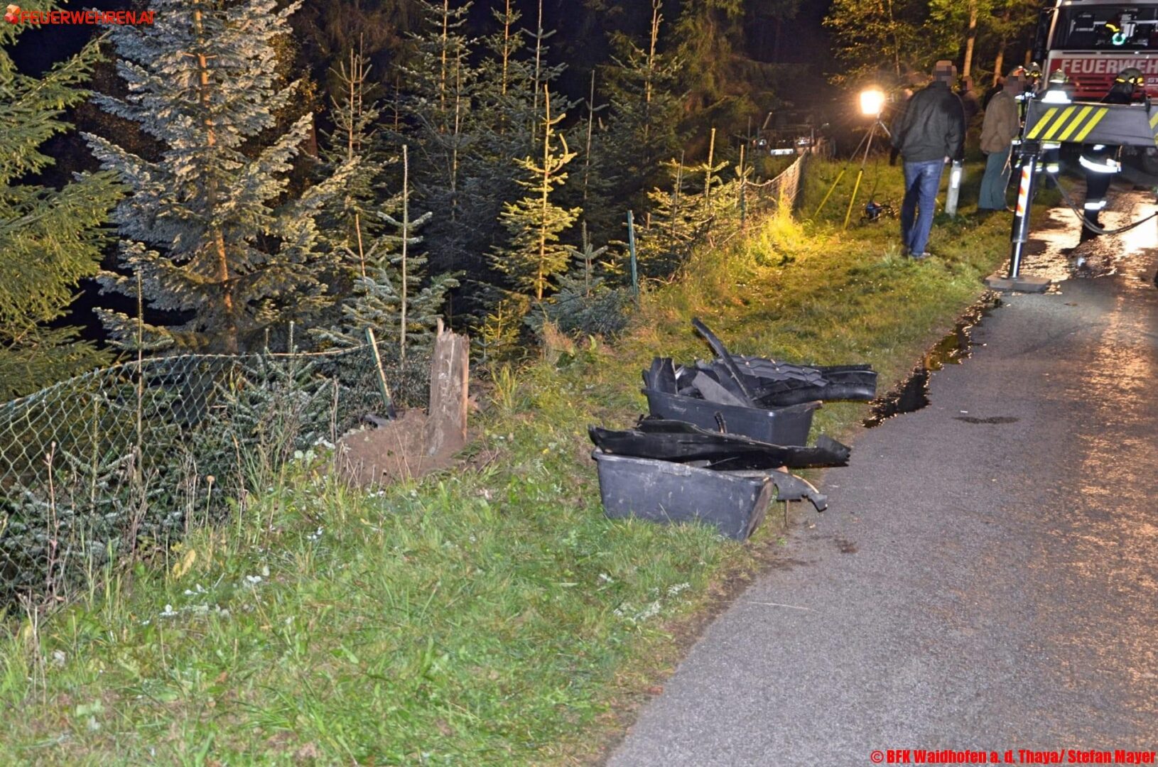 An der Teichanlage waren zum Zeitpunkt des Unfalls zufällig mehrere Personen anwesend, die durch einen heftigen Knall auf den Unfall aufmerksam wurden. Sofort eilten sie zum Fahrzeug und verständigten gleichzeitig die Einsatzkräfte. Wenige Minuten später trafen 35 Mitglieder von zwei Feuerwehren am Einsatzort ein.
