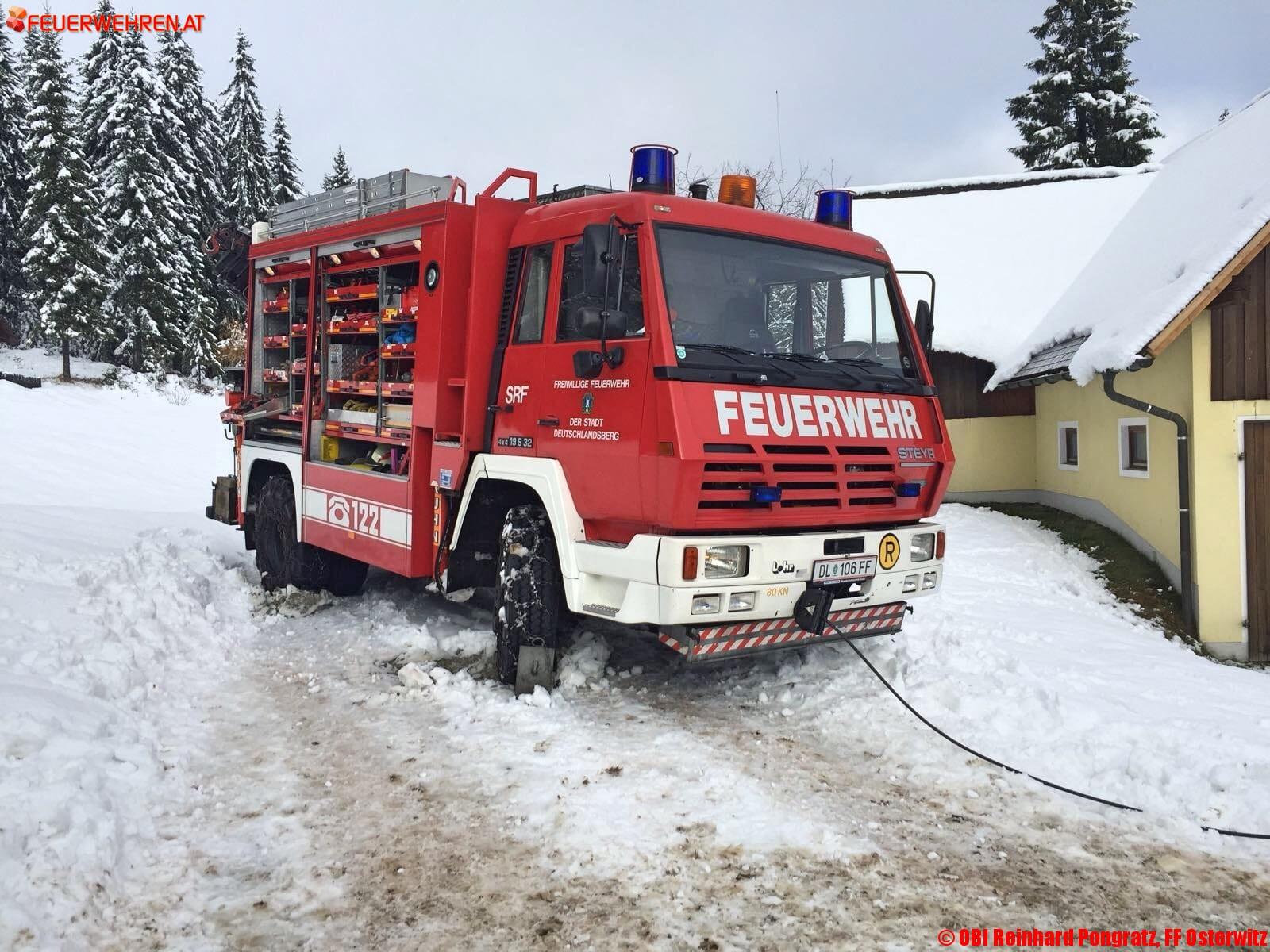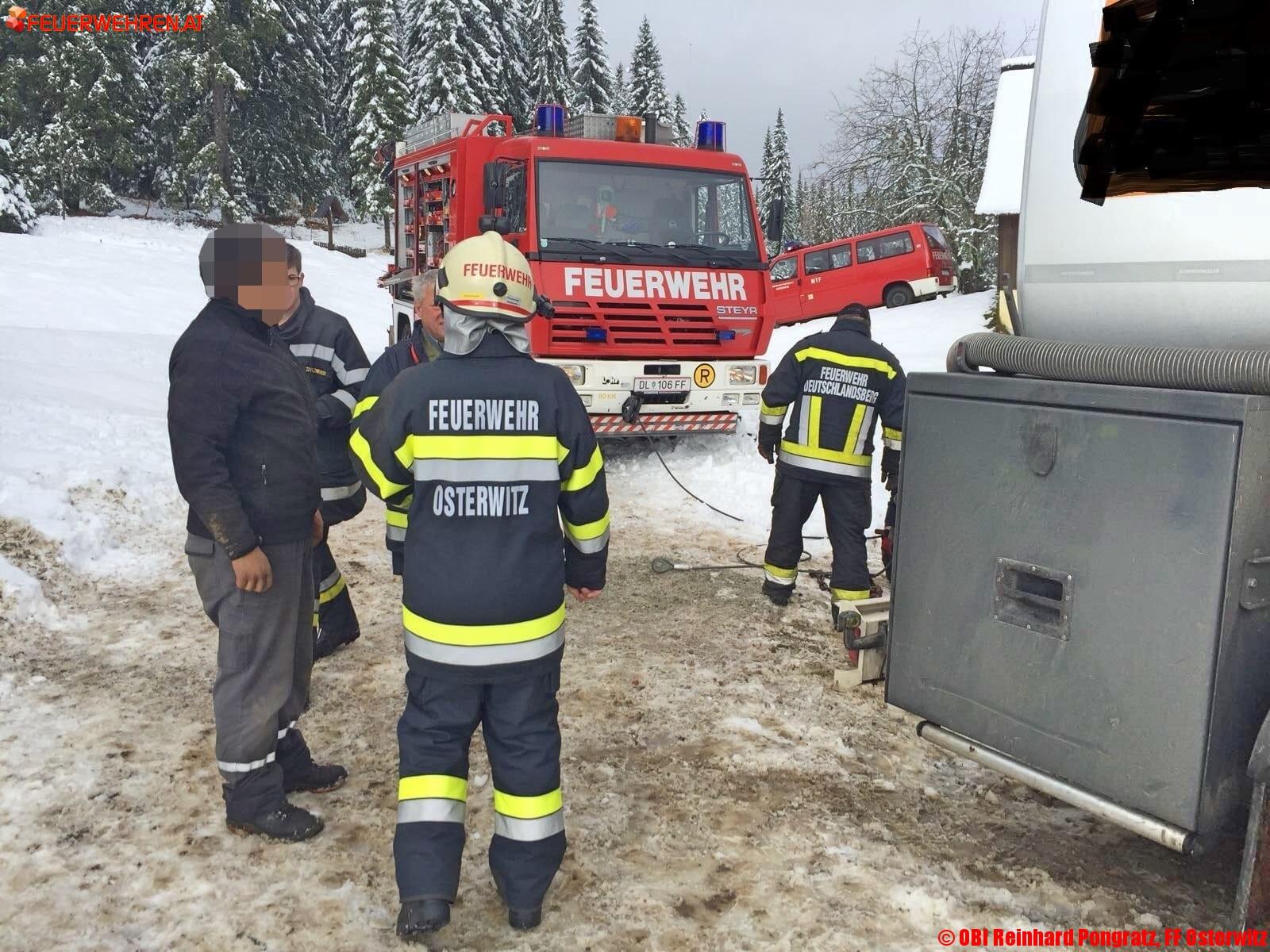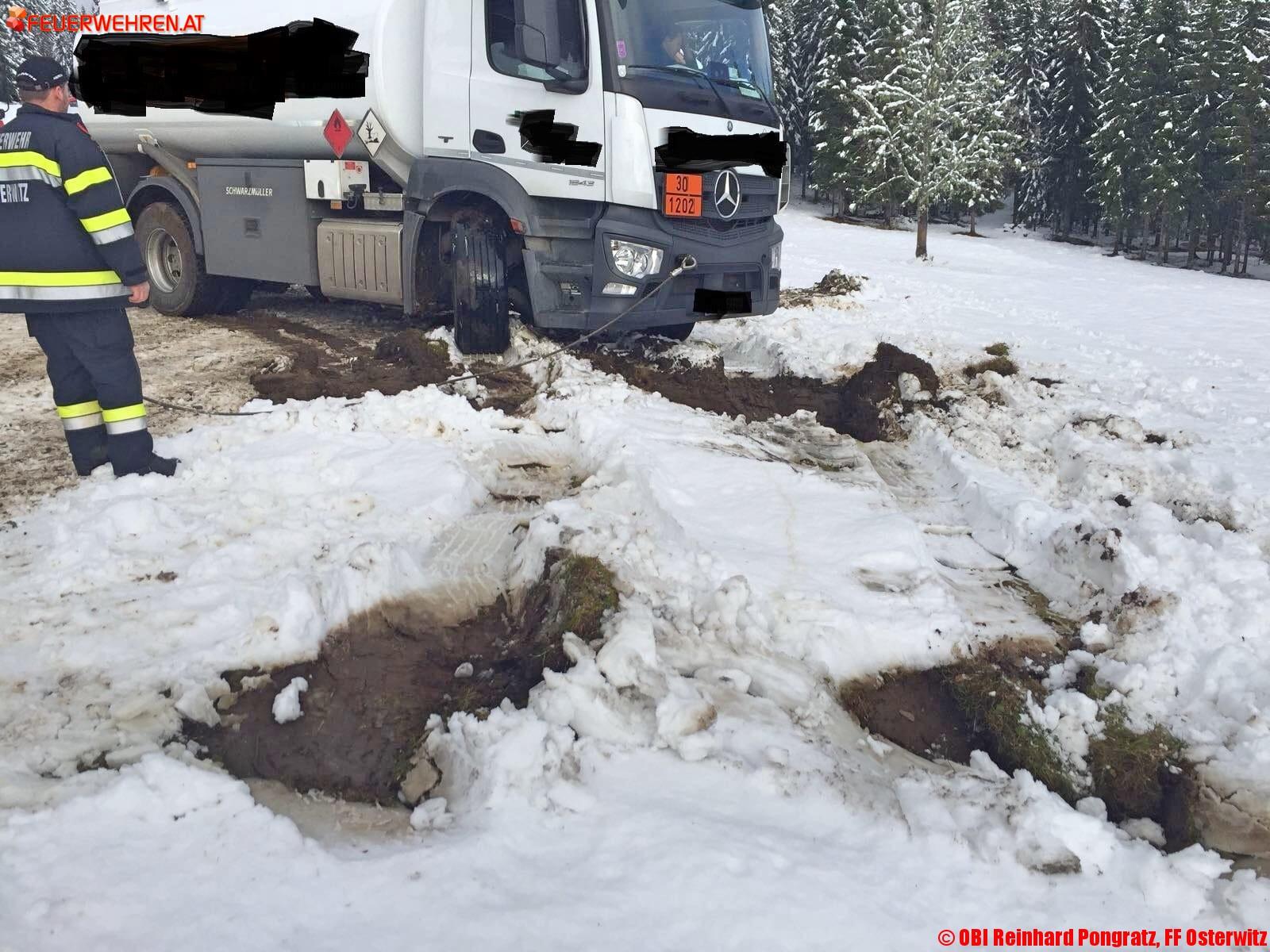 Am Donnerstag, den 09. November 2017, wurde gegen 09:30 Uhr die Feuerwehr Osterwitz zu einer Tankwagenbergung auf der Stoffhütte in Osterwitz alarmiert. Am Einsatzort angekommen erkundete der Einsatzleiter OBI Reinhard Pongratz von der FF Osterwitz die Lage.