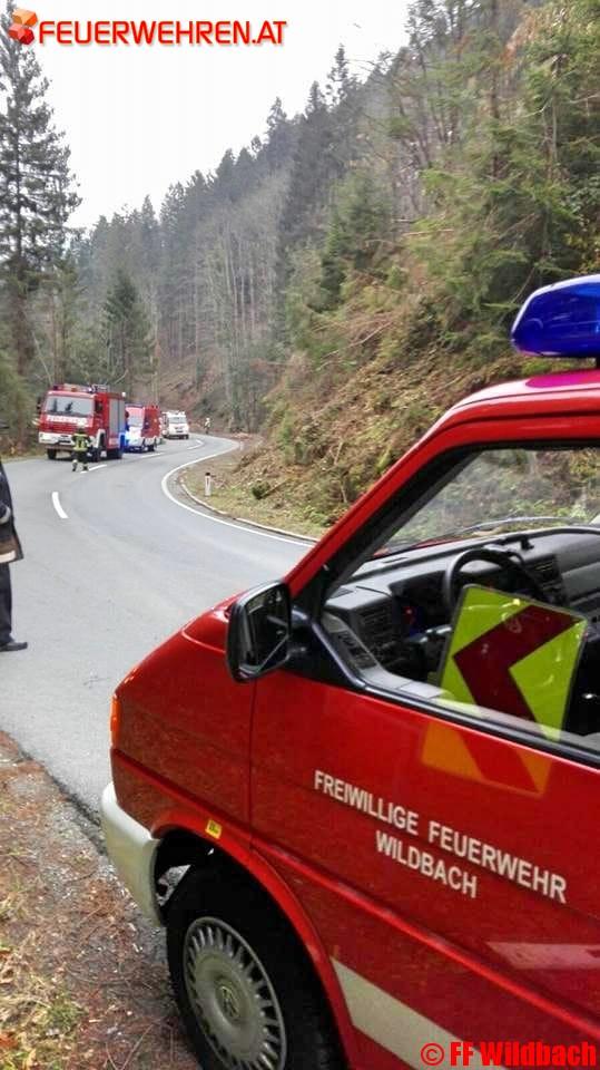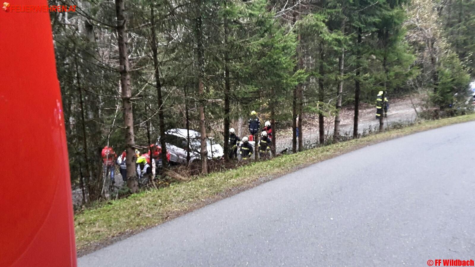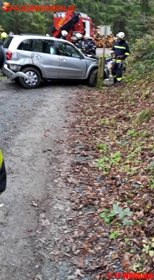 Nach mehreren Recherchen stellte sich dieses jedoch als falsch heraus. Die Insassin wurde vom Roten Kreuz versorgt und anschließend in das LKH Deutschlandsberg gebracht. Die Feuerwehren Wildbach und Deutschlandsberg sicherten nach dem Eintreffen die Unfallstelle ab, bauten einen Brandschutz auf und führten eine Suchaktion durch. Nachdem die Polizei ihre Erhebungen abgeschlossen hatte, wurde die Bergung des Fahrzeuges vorgenommen. Gegen 16:15 Uhr konnten die Feuerwehren wieder in die Feuerwehrhäuser einrücken und die Einsatzbereitschaft herstellen.