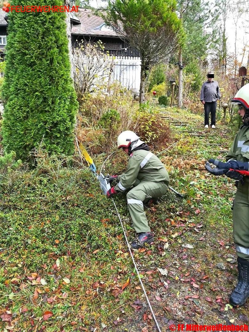 Am Donnerstag den 02.11.2017 wurden die Kameraden der FF Mitterweißenbach zu einer Fahrzeugbergung auf einer Privatstraße in Mitterweißenbach alarmiert. Bei ihrer Ankunft fanden die Florianis einen PKW vor, welcher nach einem missglückten Rangierversuch in einen Entwässerungsgraben neben der steilen Zufahrt eines Einfamilienhauses gerutscht war.