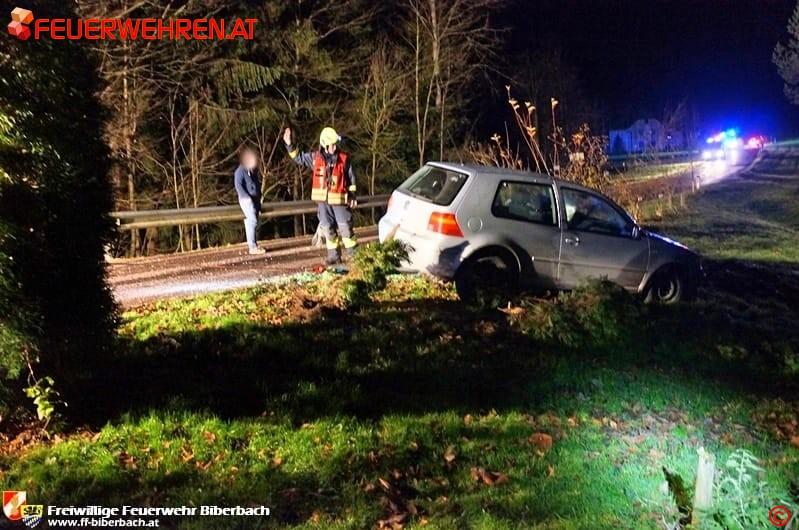 Vermutlich aufgrund von Glatteis, zum Zeitpunkt des Unfalles herrschten Nebel und Temperaturen um den Gefrierpunkt, verlor eine Lenkerin die Kontrolle über ihr Fahrzeug, krachte in die Leitplanke und kam auf der gegenüberliegenden Straßenseite zum Stillstand. Dabei wurde das Fahrzeug zusätzlich von Sträuchern am Straßenrand gebremst. Die Lenkerin kam dabei mit dem Schrecken davon und blieb glücklicherweise unverletzt.
