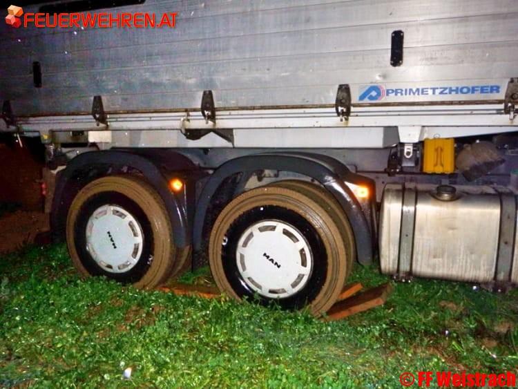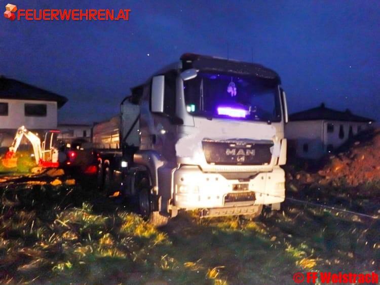 Am regnerischen Montag, den 06.11.2017 wurde die FF Weistrach kurz vor 17:00 Uhr über Pager und SMS zu einer LKW Bergung in die Pfarrsiedlung gerufen. Bei Grabungsarbeiten im Garten wurde das Aushubmaterial von einem Bagger auf einen 3 Achs LKW verladen.