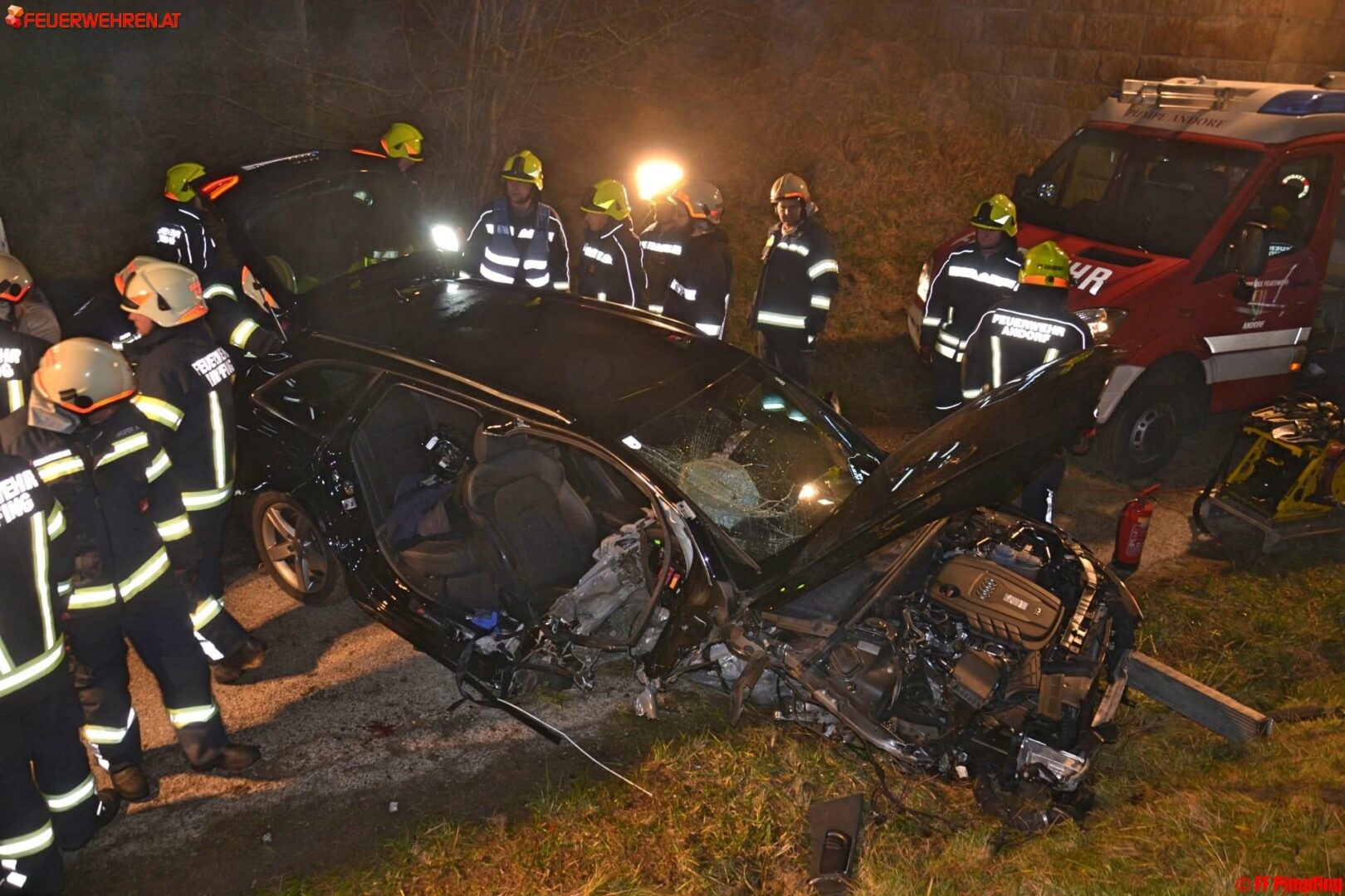 In den frühen Morgenstunden des 26. Dezembers 2017 ereignete sich auf der Bundesstraße 137 im Bereich der Unterführung Laab in Andorf ein schwerer Verkehrsunfall. Ein aus Richtung Zell an der Pram kommender PKW mit zwei Insassen kam von der Fahrbahn ab, kollidierte mit dem Brückenbordstein und stürzte auf die darunter verlaufende Querstraße.