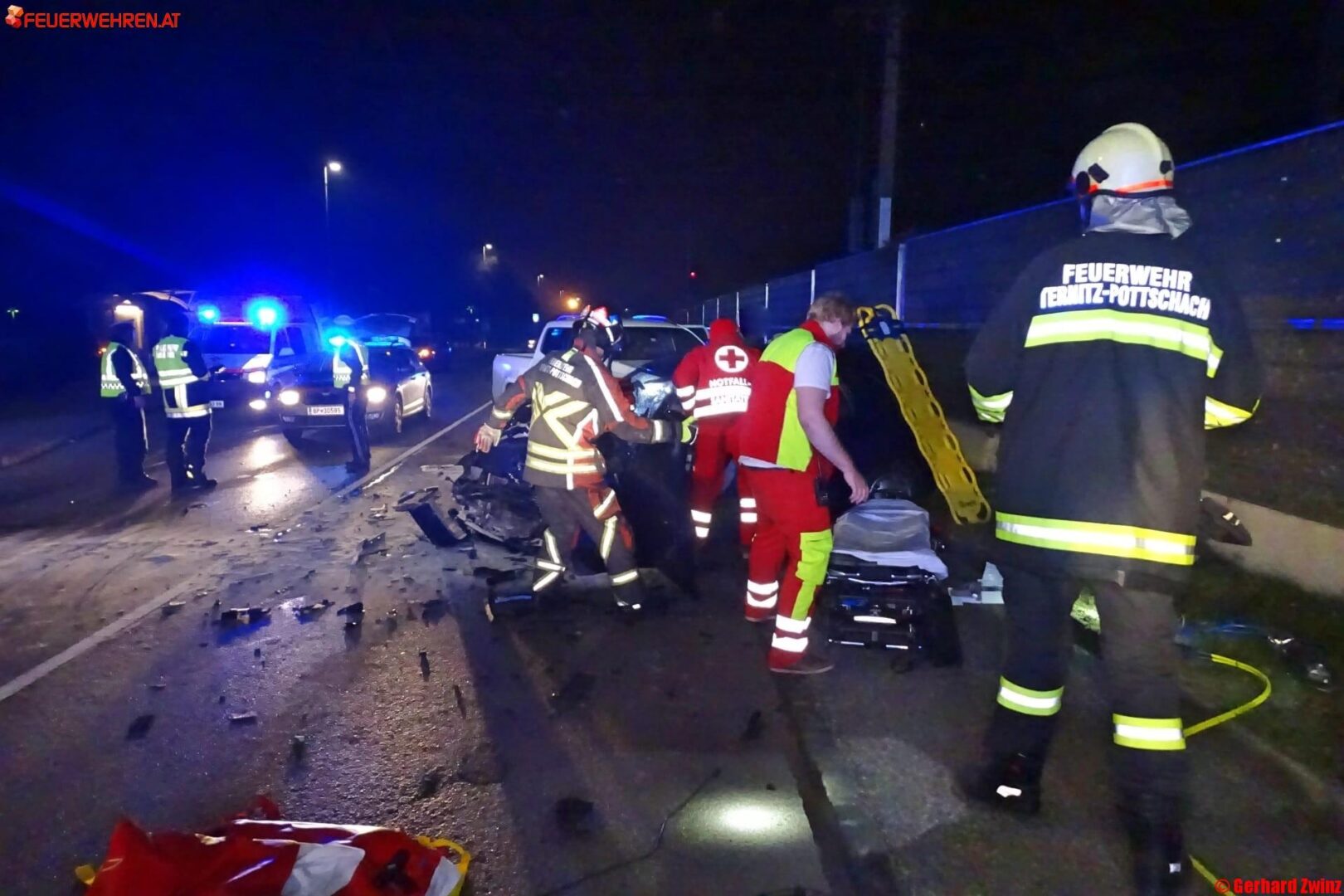Schwerer Verkehrsunfall mit zwei Verletzten im Gemeindegebiet von Ternitz